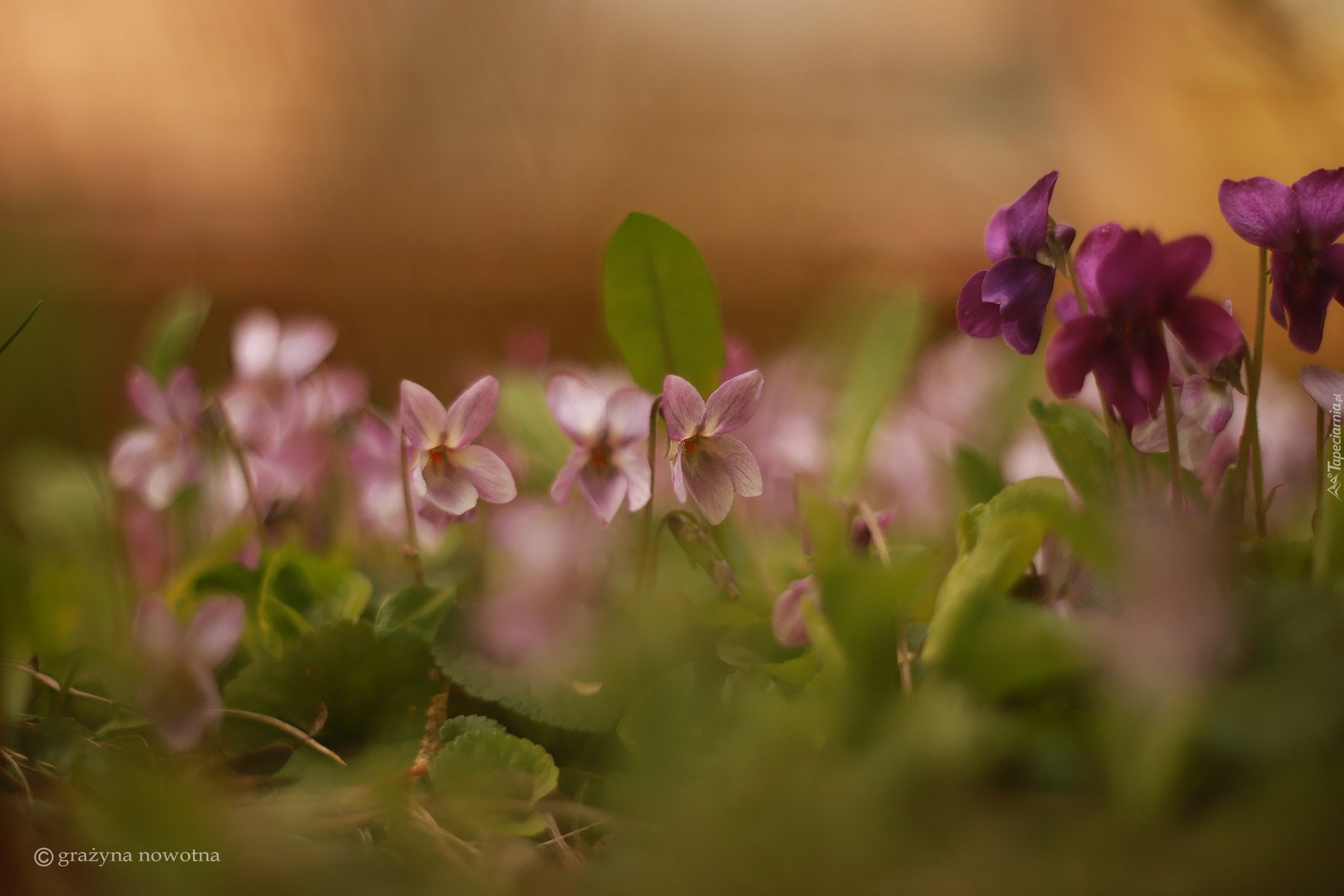 Edytor tapety: Fiołki wonne różowe i fioletowe