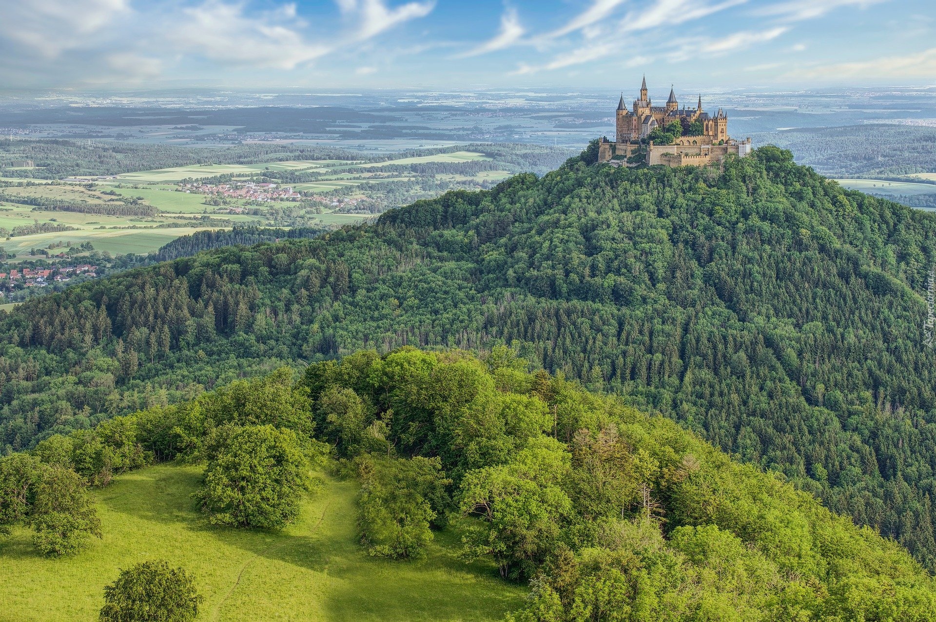 Edytor tapety: Zamek Hohenzollern na zalesionej górze Hohenzollern