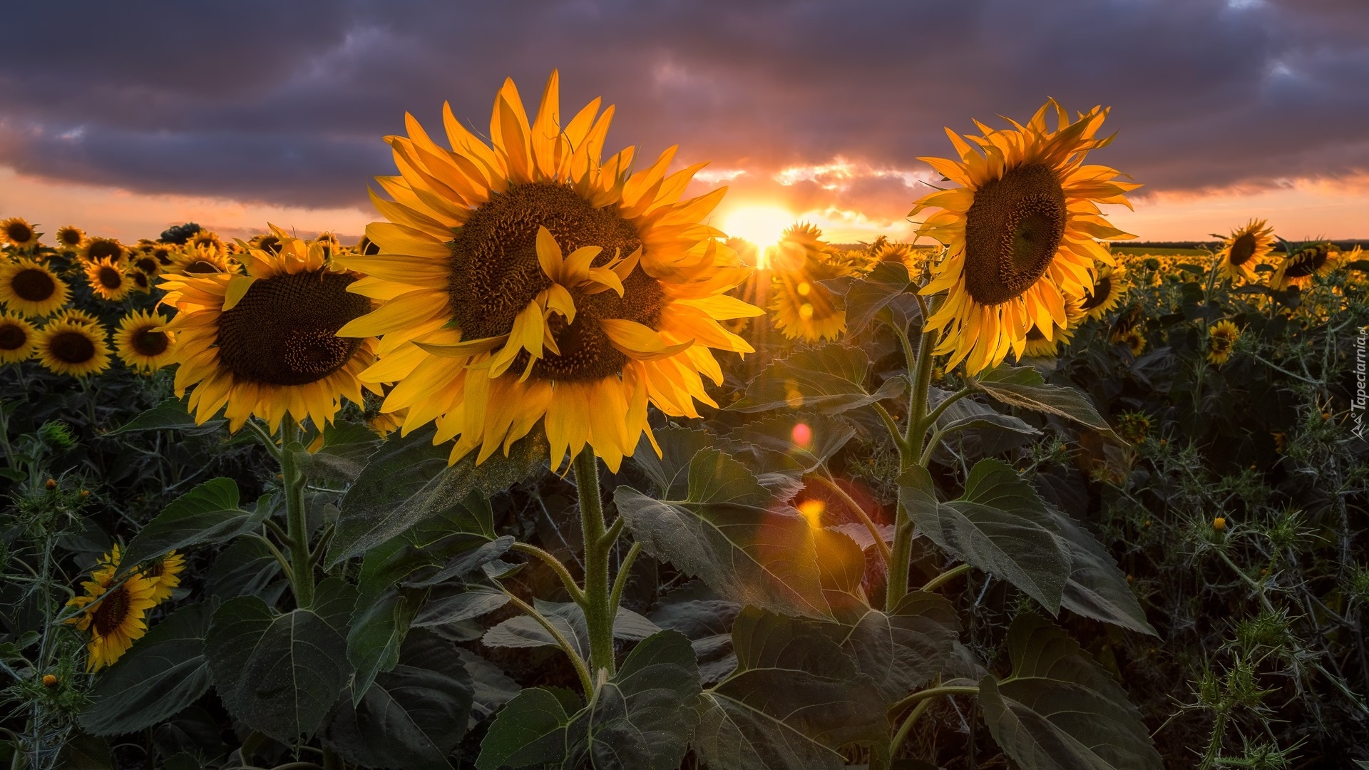 Edytor tapety: Słoneczniki w porannym słońcu