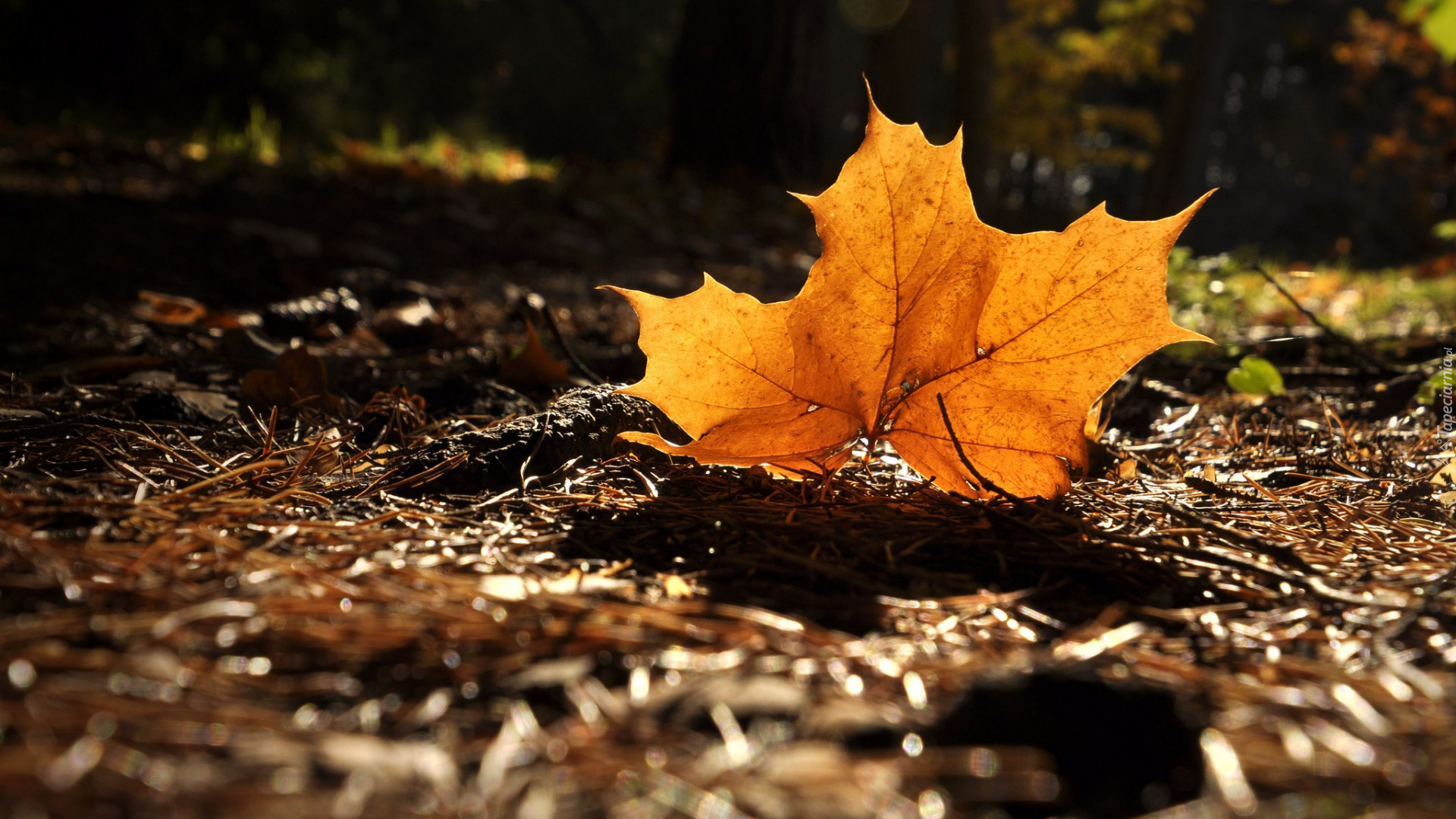 Edytor tapety: Pożółkły liść klonu w słońcu