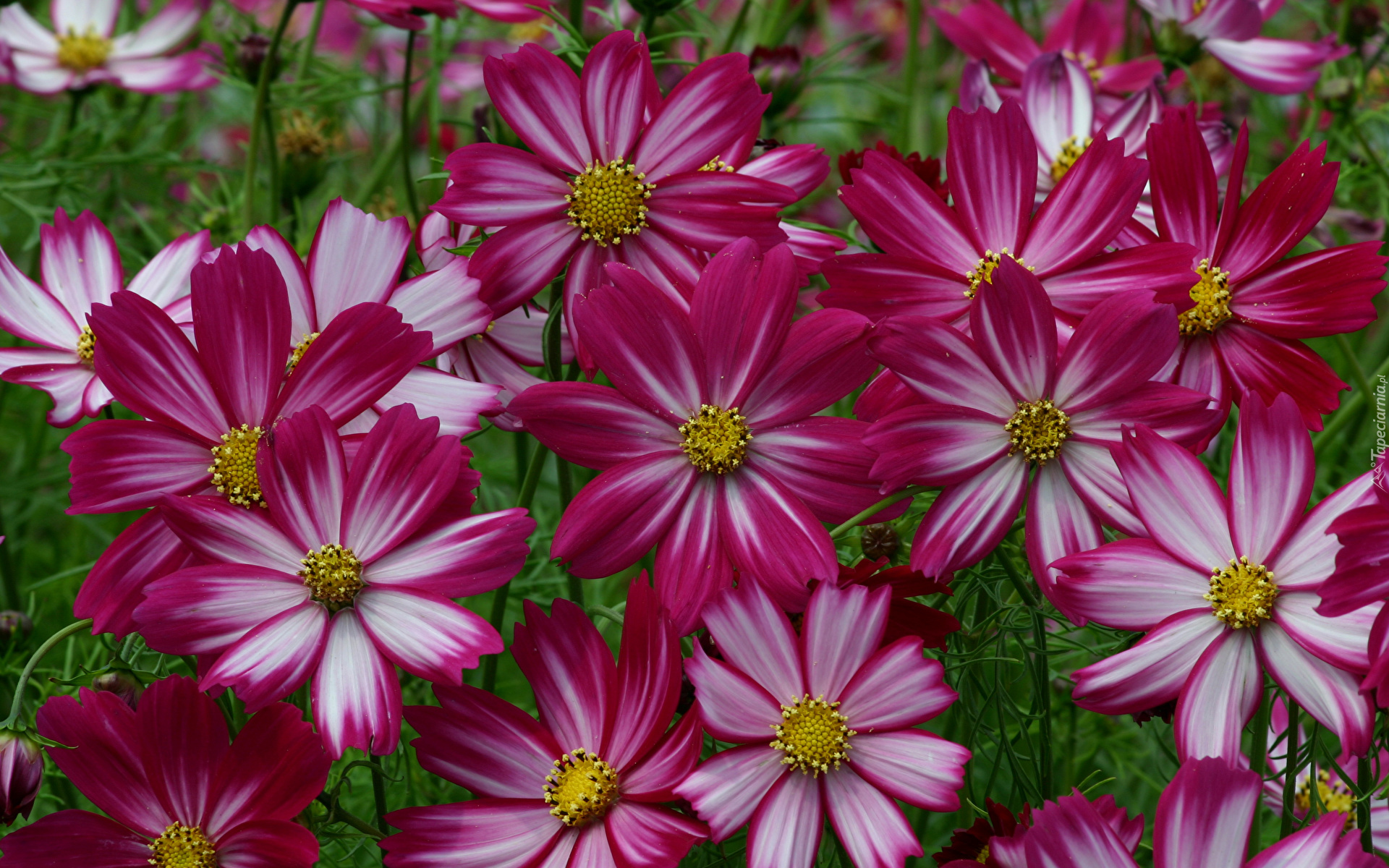 Edytor tapety: Bordowo-biała kosmea w zbliżeniu