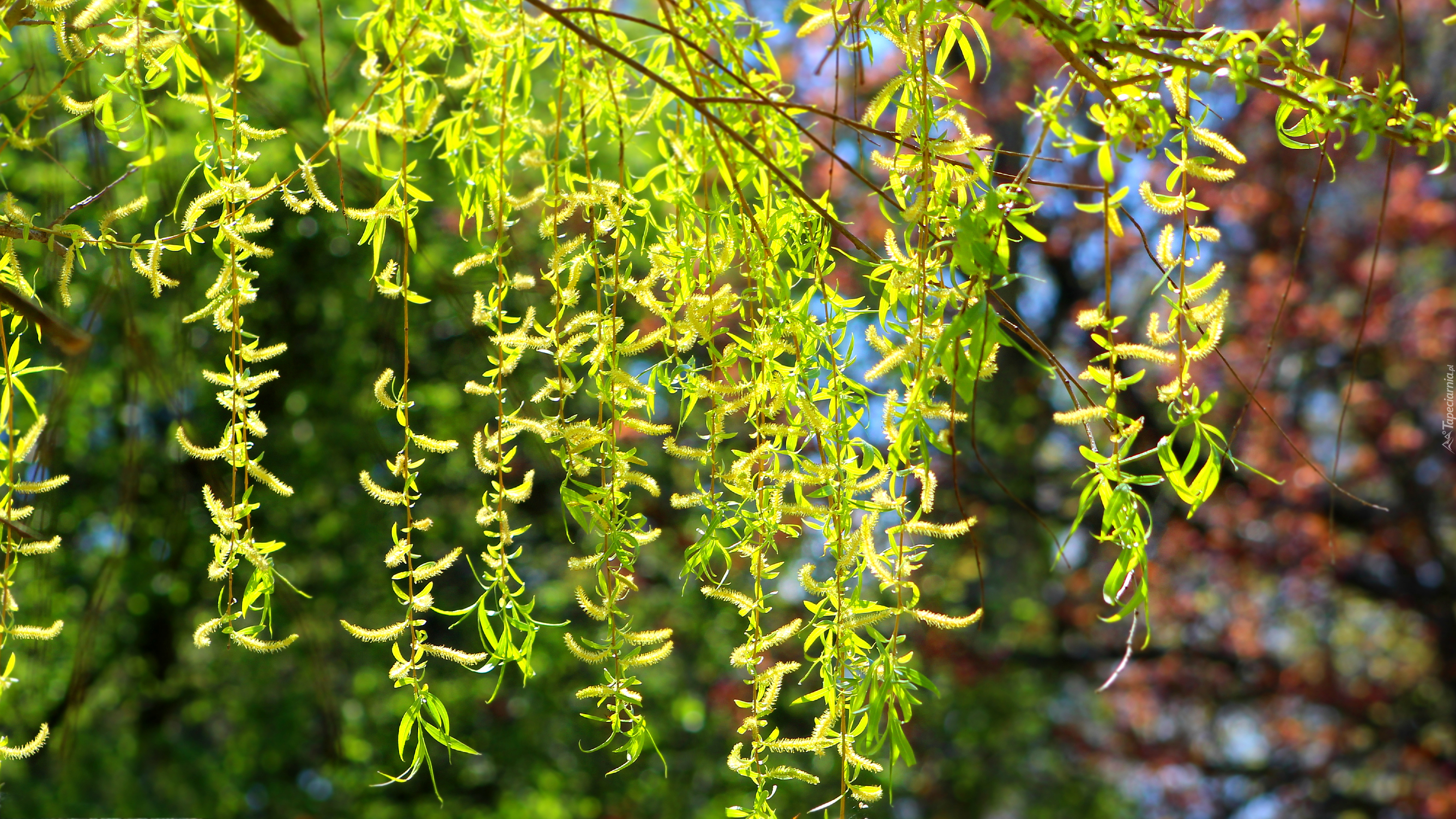 Edytor tapety: Zwisające gałązki wierzby w słońcu