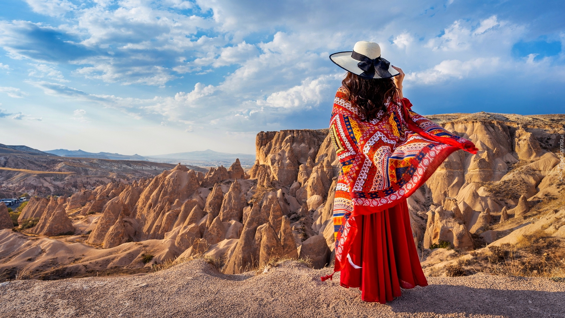 Edytor tapety: Kobieta na tle gór i skał w Turcji