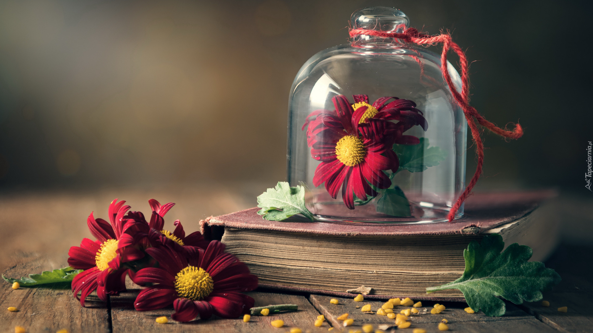 Edytor tapety: Chryzantemy obok książki