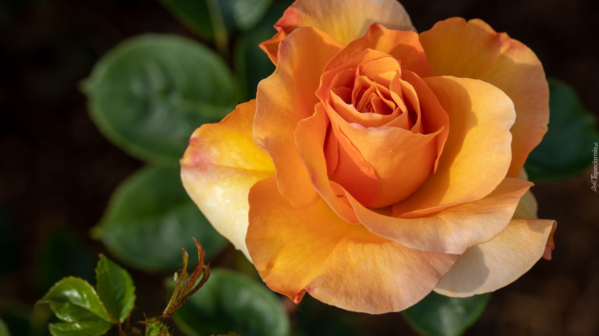 Edytor tapety: Rozkwitająca pomarańczowa róża