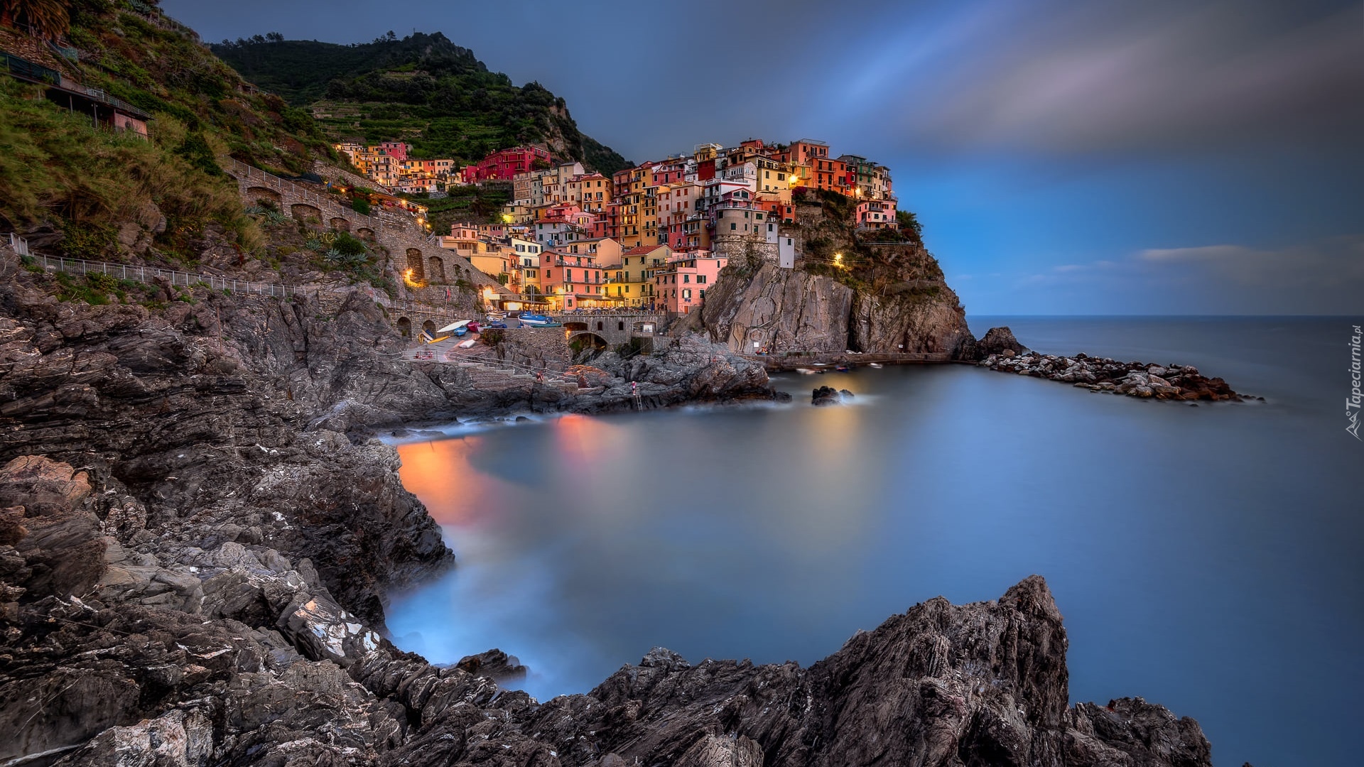 Edytor tapety: Domy na skałach nad zatoką w Manaroli