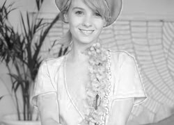 Edytor tapety: Blondynka w czerwonej bluzce i berecie