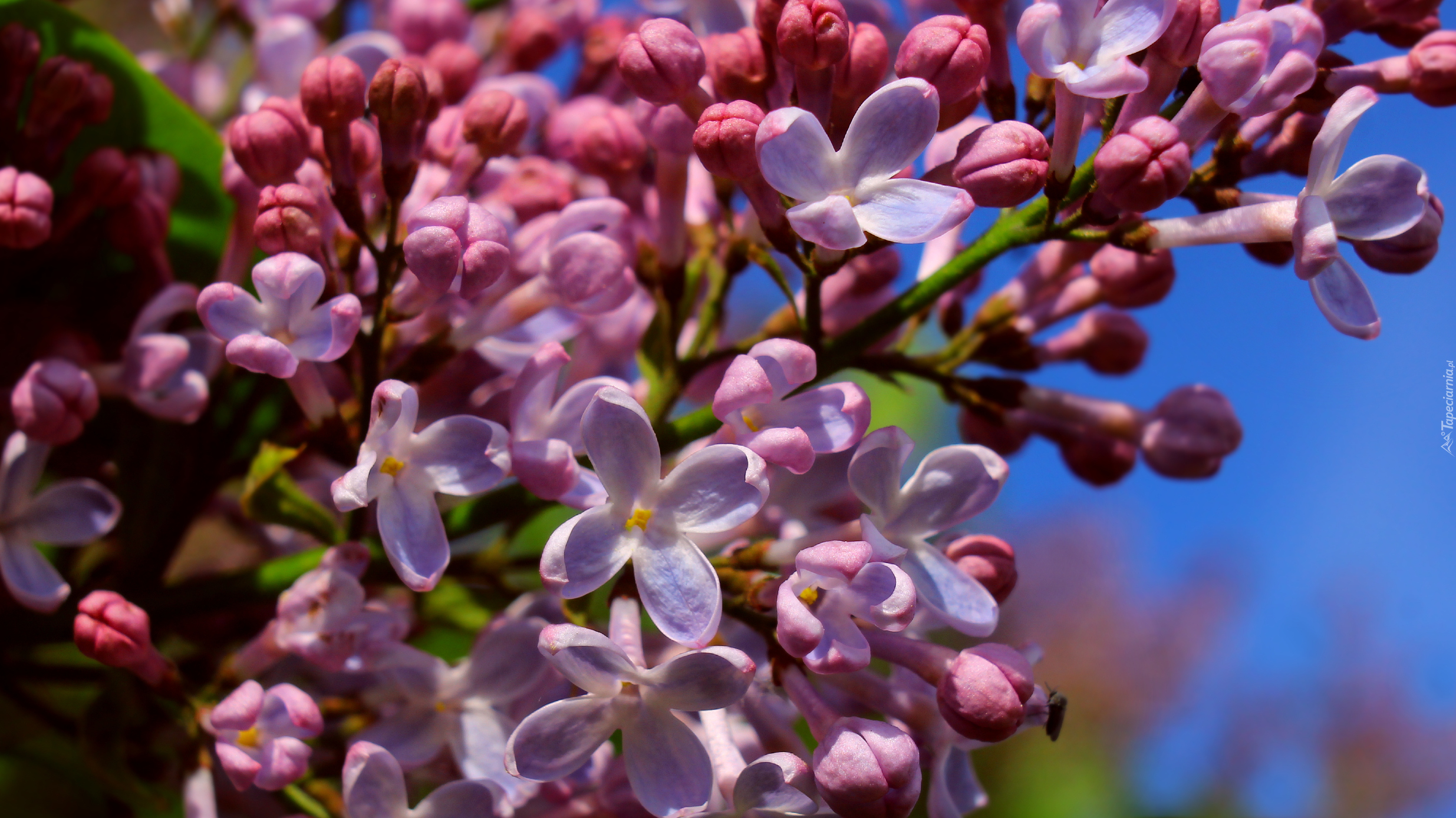 Edytor tapety: Zbliżenie gałązki z rozkwitającym bzem