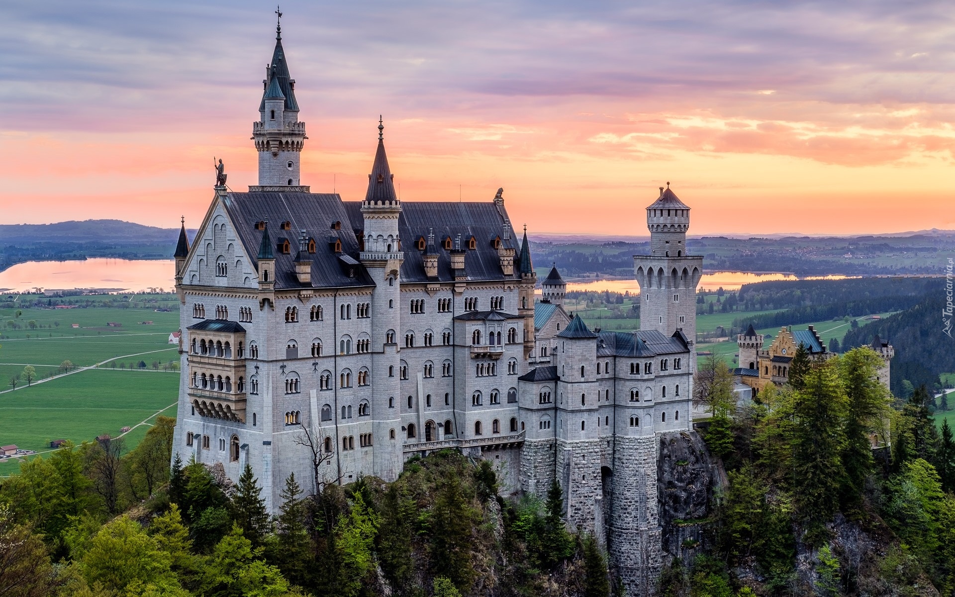 Edytor tapety: Zamek Neuschwanstein na wzgórzu w gminie Schwangau