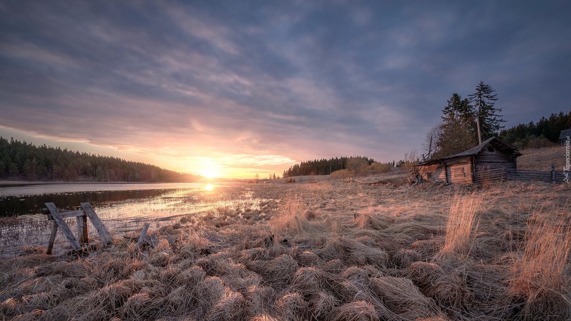 Edytor tapety: Drewniany dom nad jeziorem Ładoga