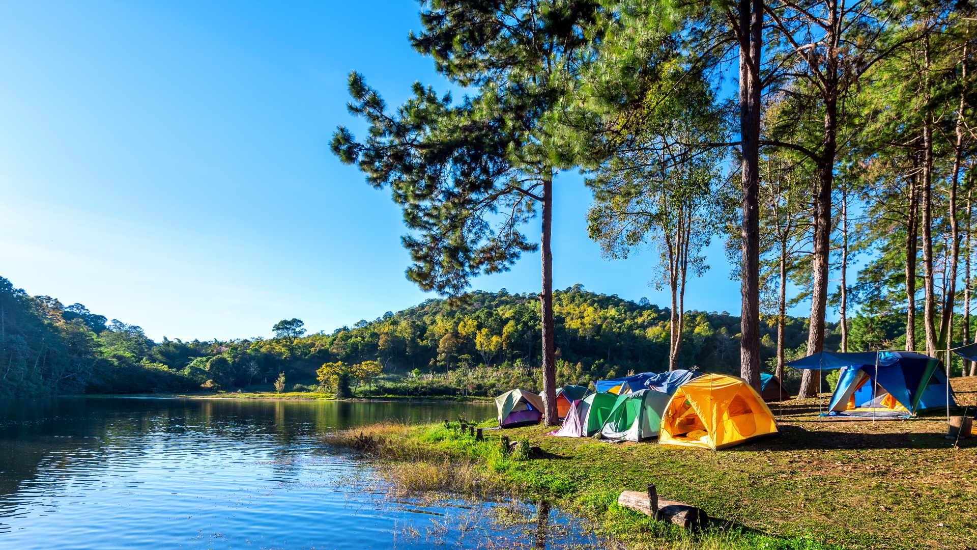 Edytor tapety: Kolorowe namioty nad jeziorem Pang Oung w Tajlandii