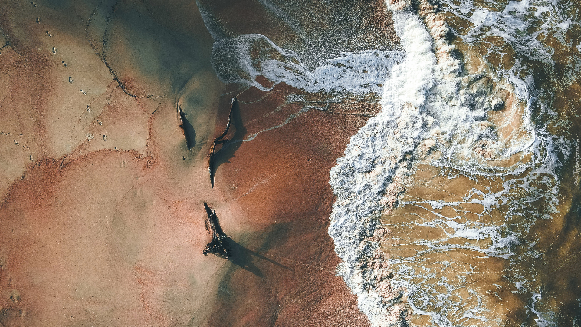 Edytor tapety: Kłody na plaży na brzegu morza