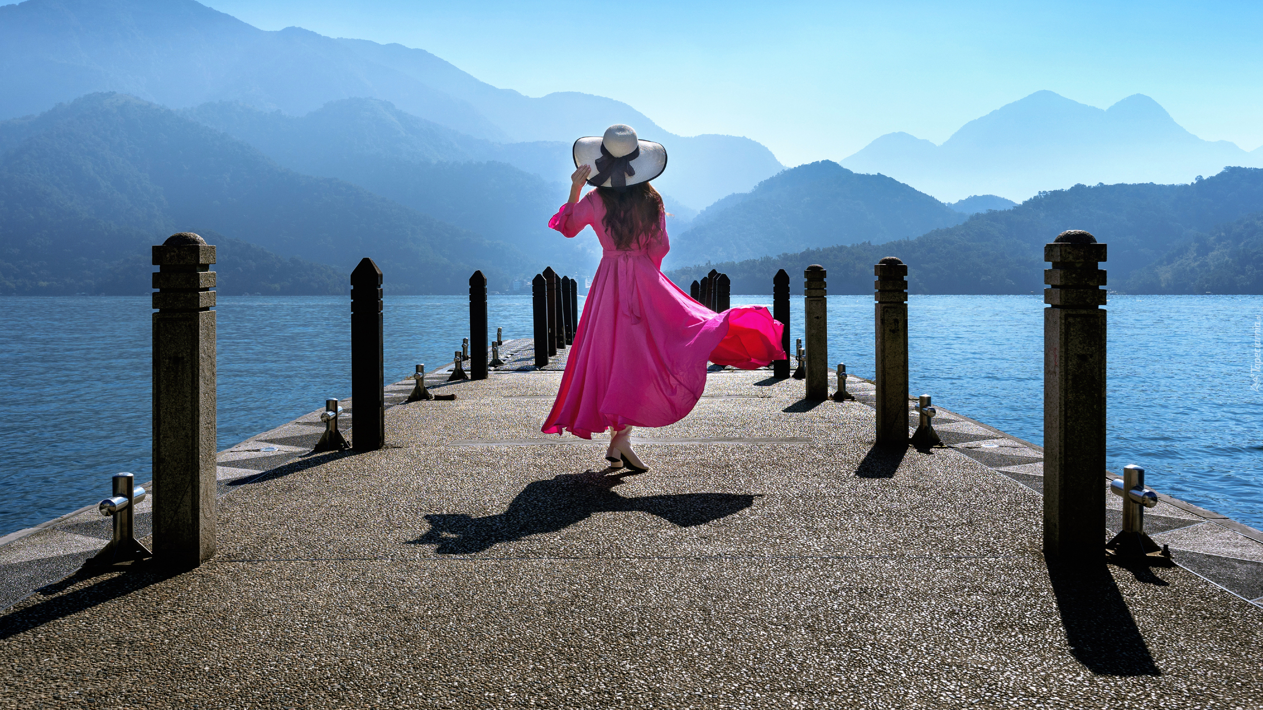 Edytor tapety: Kobieta na pomoście na jeziorze Sun Moon Lake
