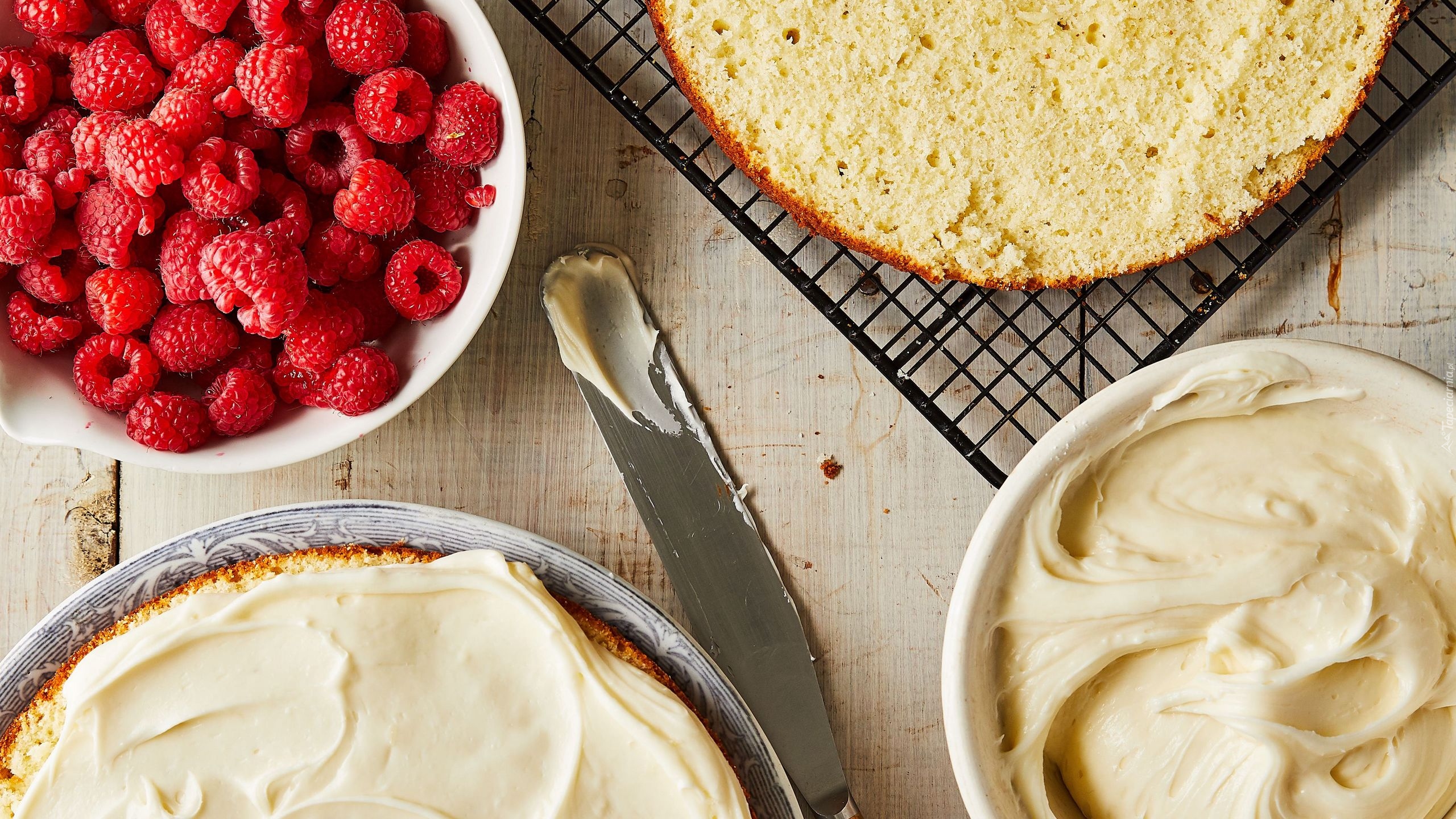 Edytor tapety: Składniki do ciasta z malinami i kremem
