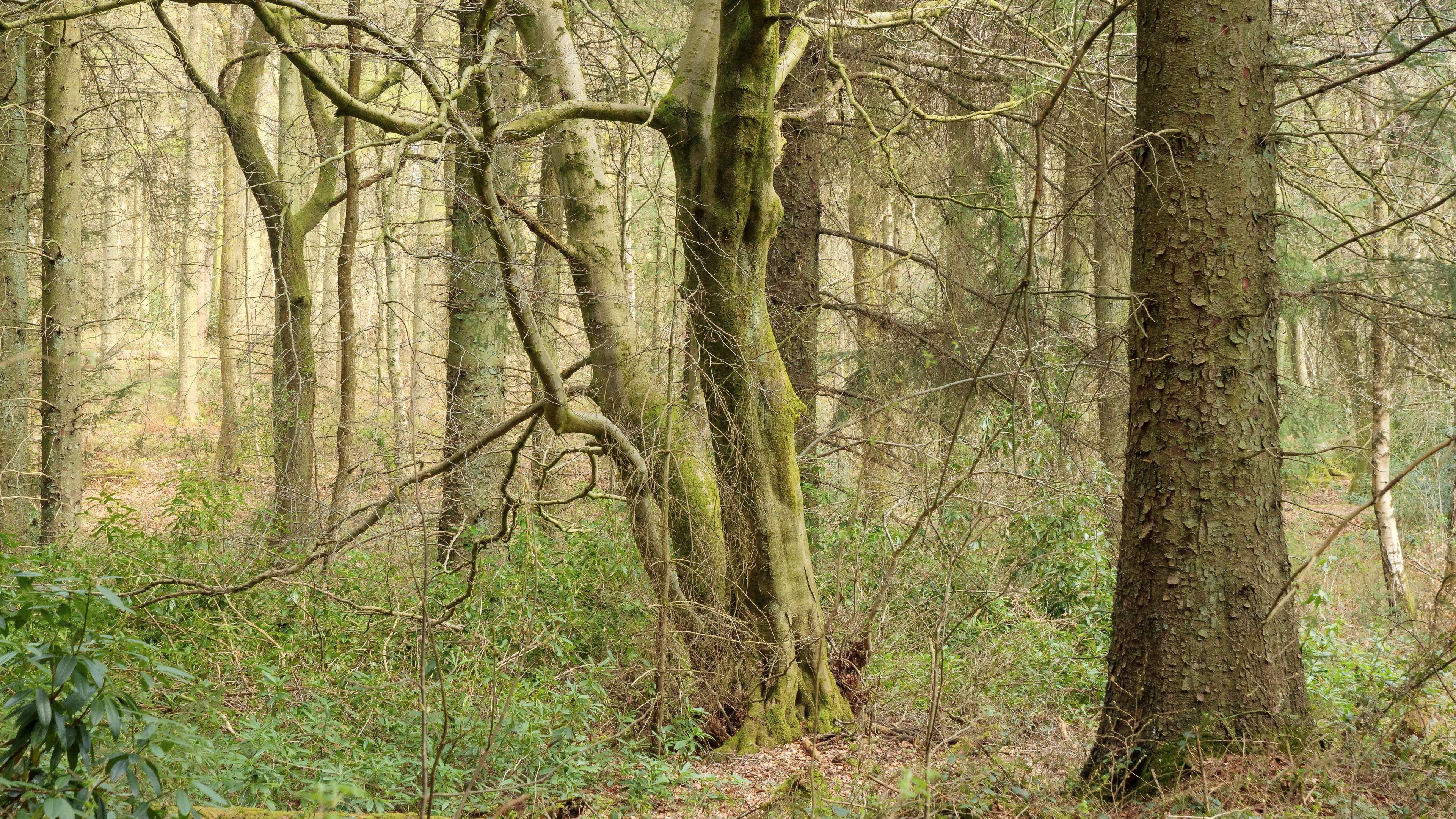 Edytor tapety: Bezlistne drzewa w lesie