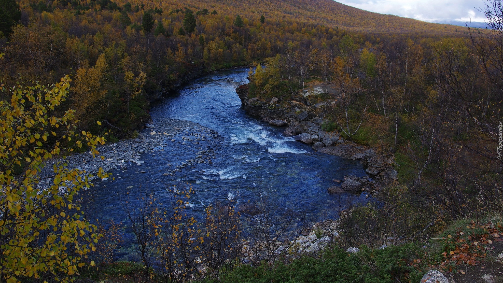 Edytor tapety: Jesienny las wzdłuż rzeki