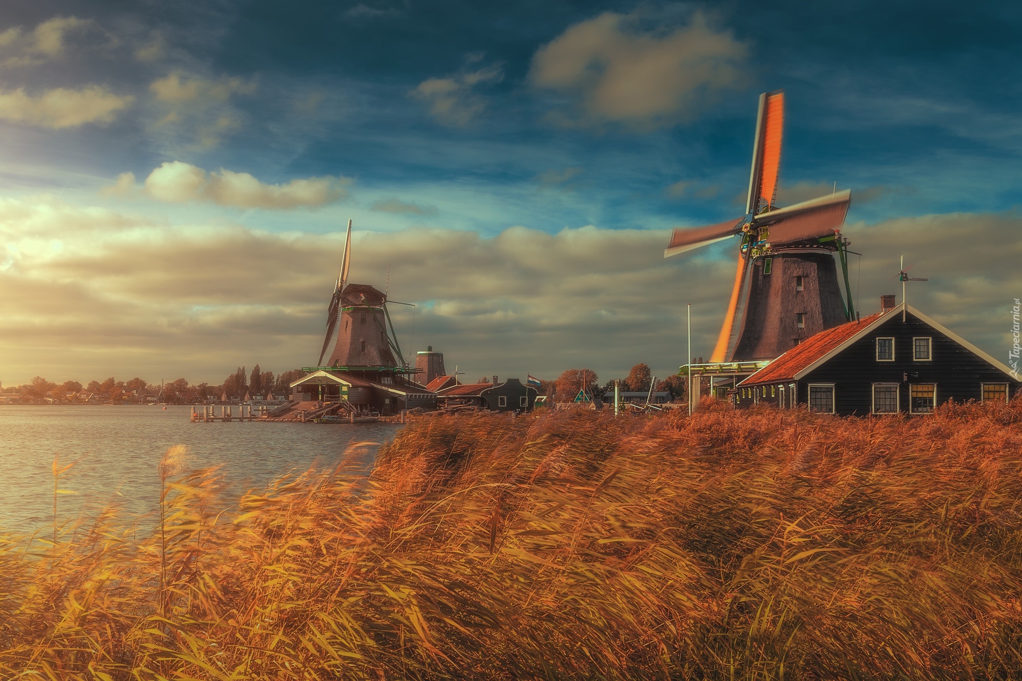 Edytor tapety: Wiatraki nad rzeką Zaan
