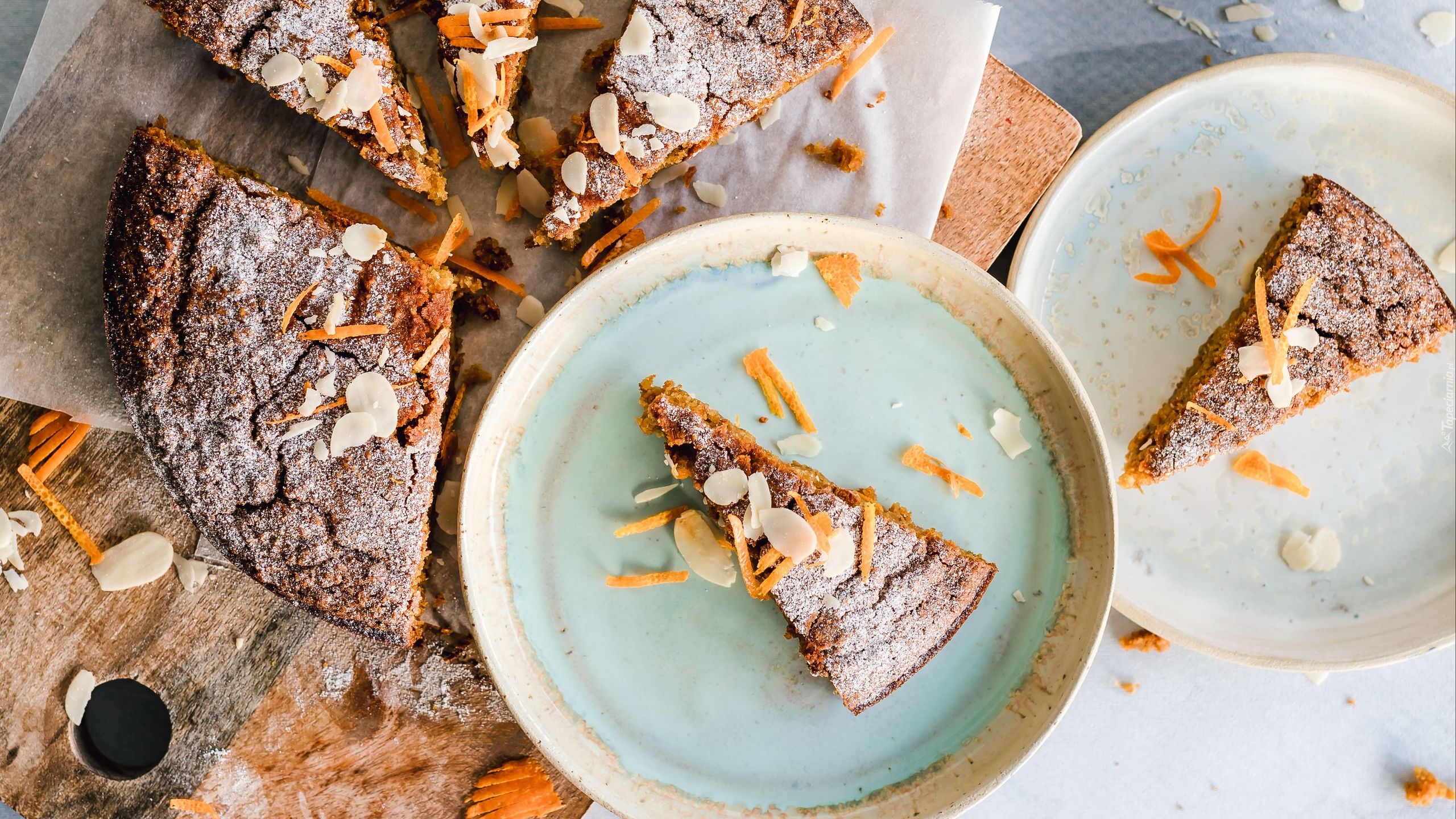 Edytor tapety: Pokrojone kawałki ciasta na talerzykach i desce