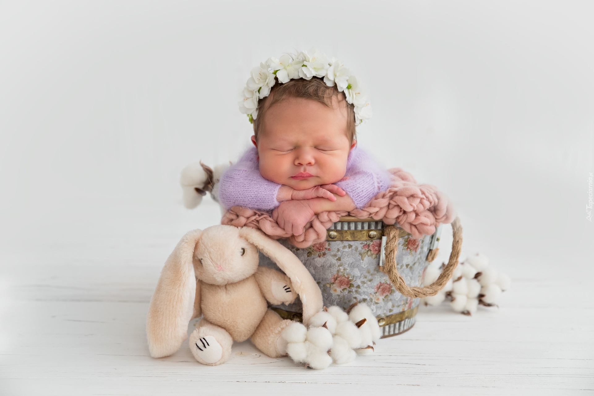 Edytor tapety: Śpiące niemowlę w wianku