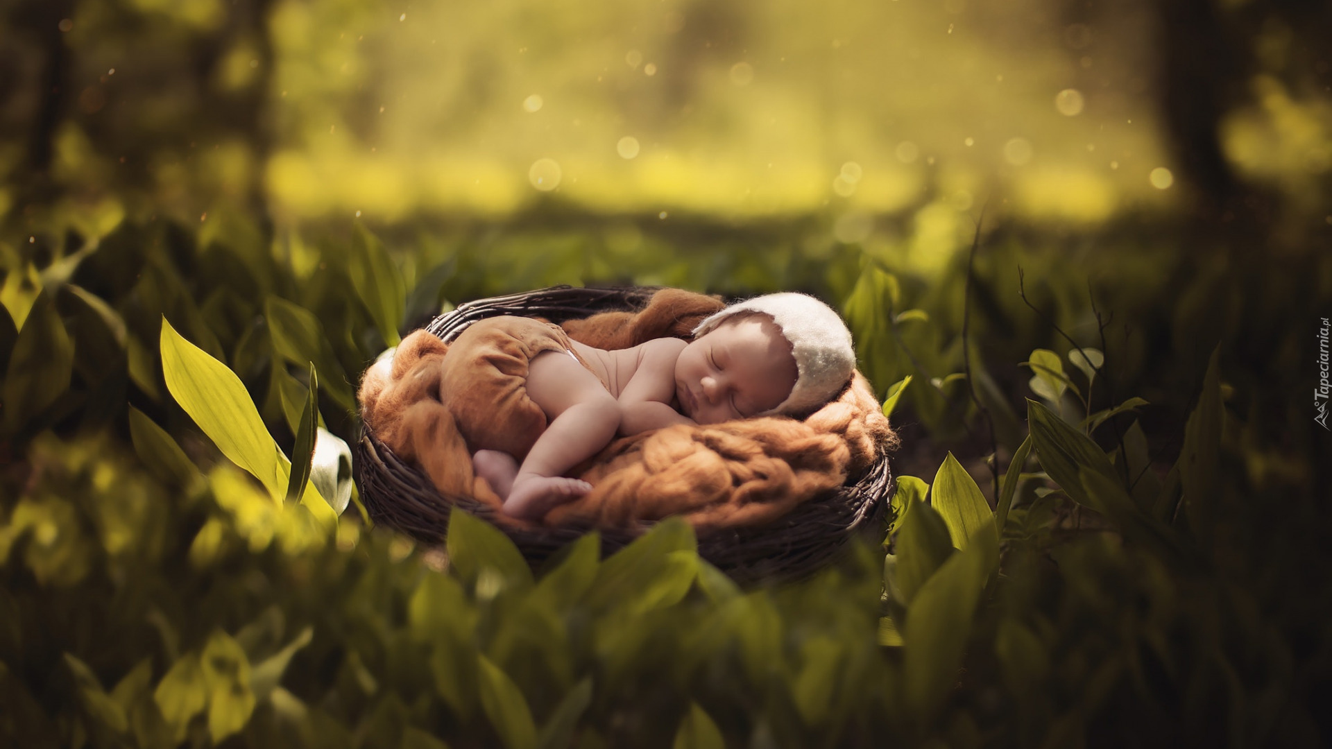 Edytor tapety: Śpiące niemowlę w koszyku