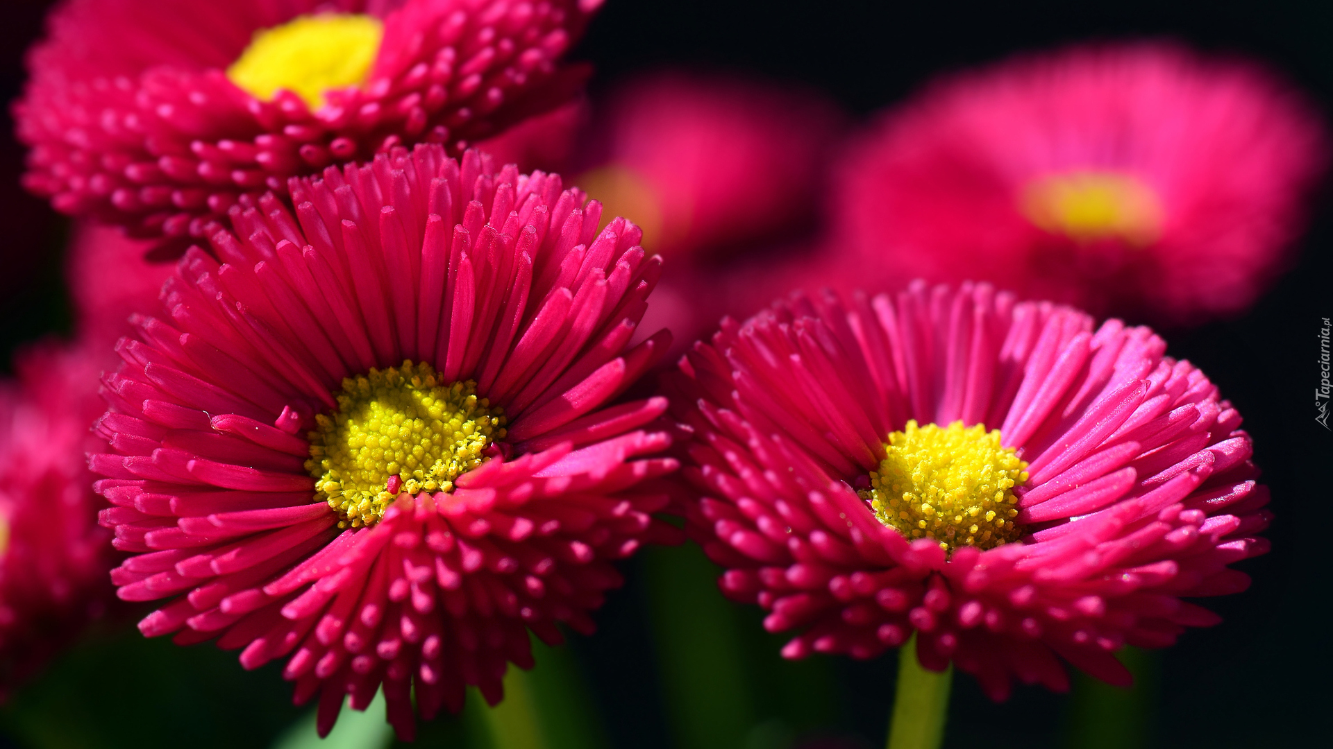 Edytor tapety: Bordowe stokrotki ogrodowe w zbliżeniu