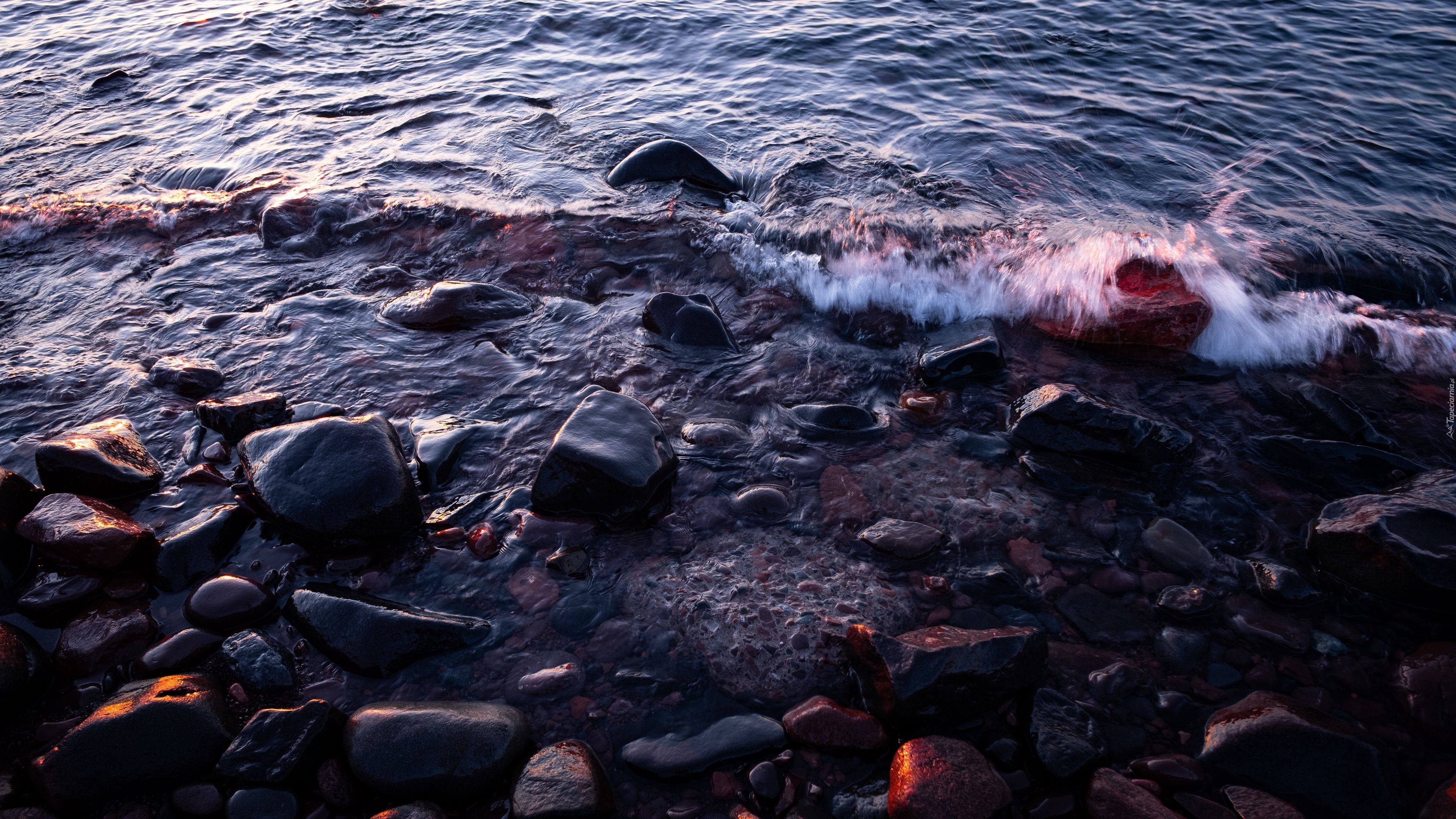 Edytor tapety: Kamienie i fale na morskim brzegu