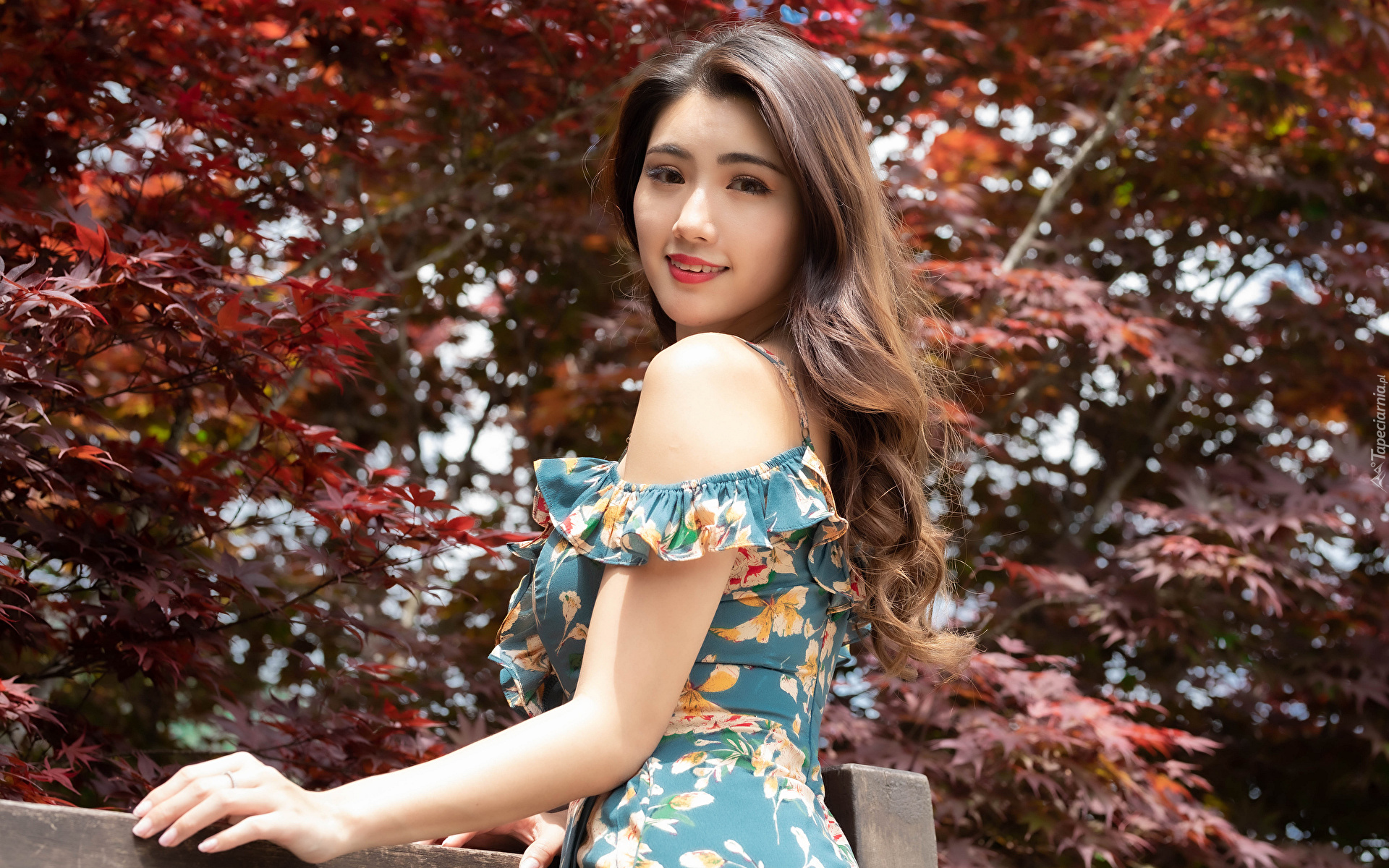 Edytor tapety: Długowłosa azjatka w kwiecistej sukience