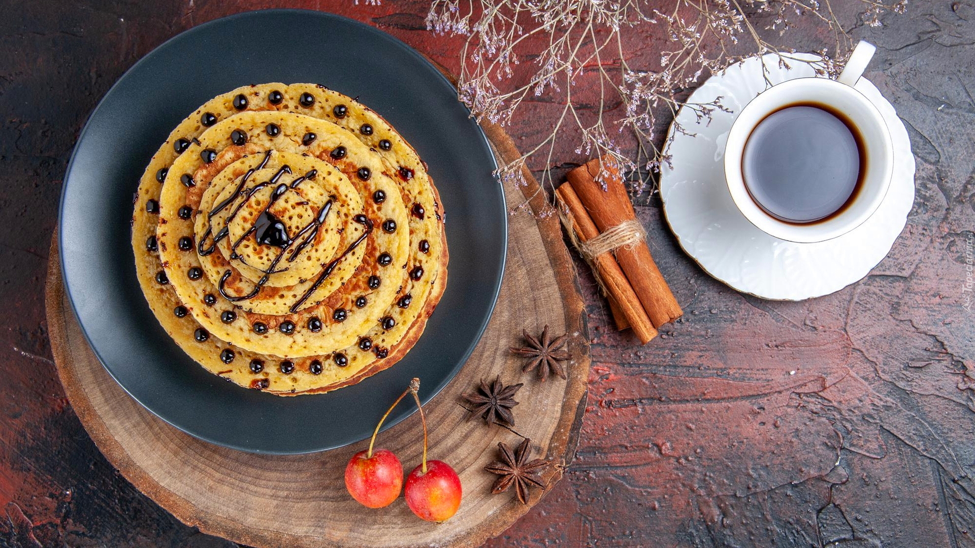 Edytor tapety: Naleśniki obok filiżanki kawy