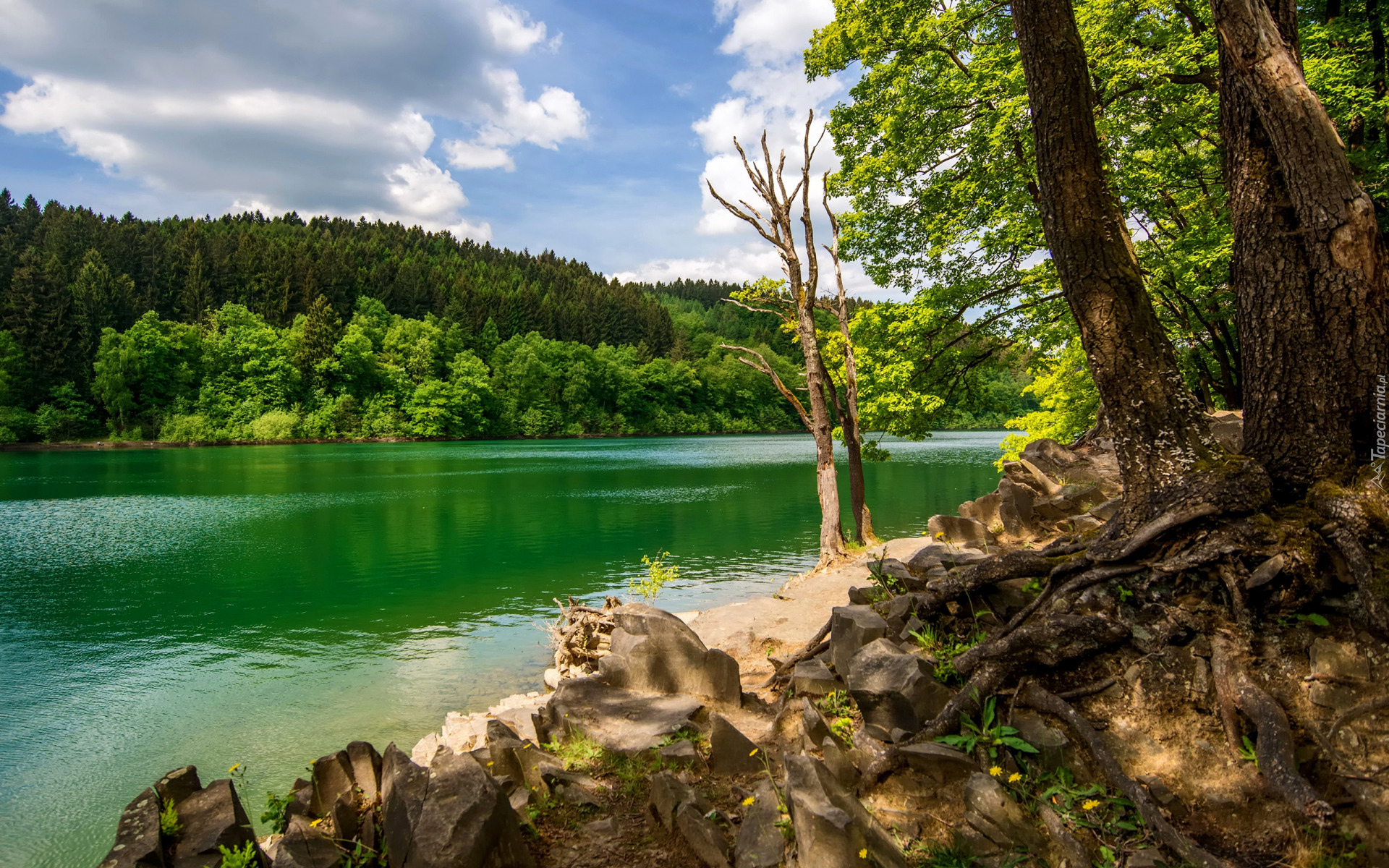 Edytor tapety: Kamienie i korzenie drzew nad rzeką