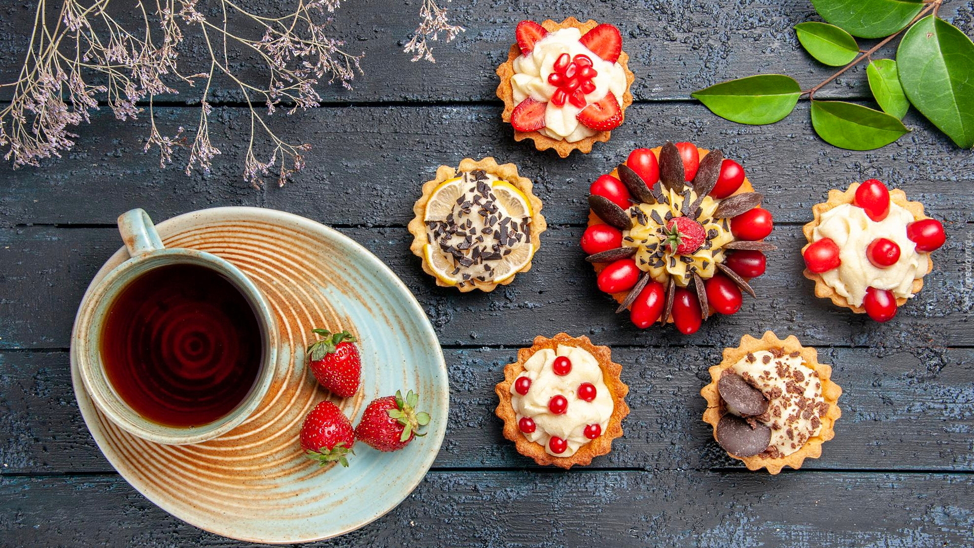 Edytor tapety: Babeczki obok herbaty w filiżance