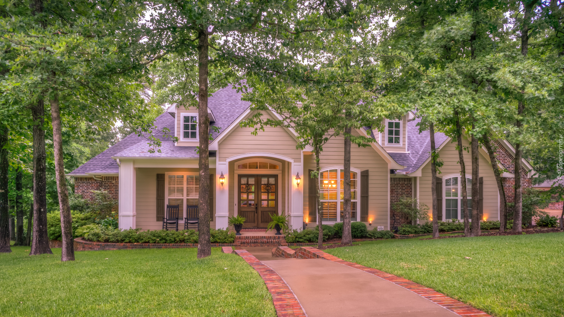 Edytor tapety: Drzewa przed domem