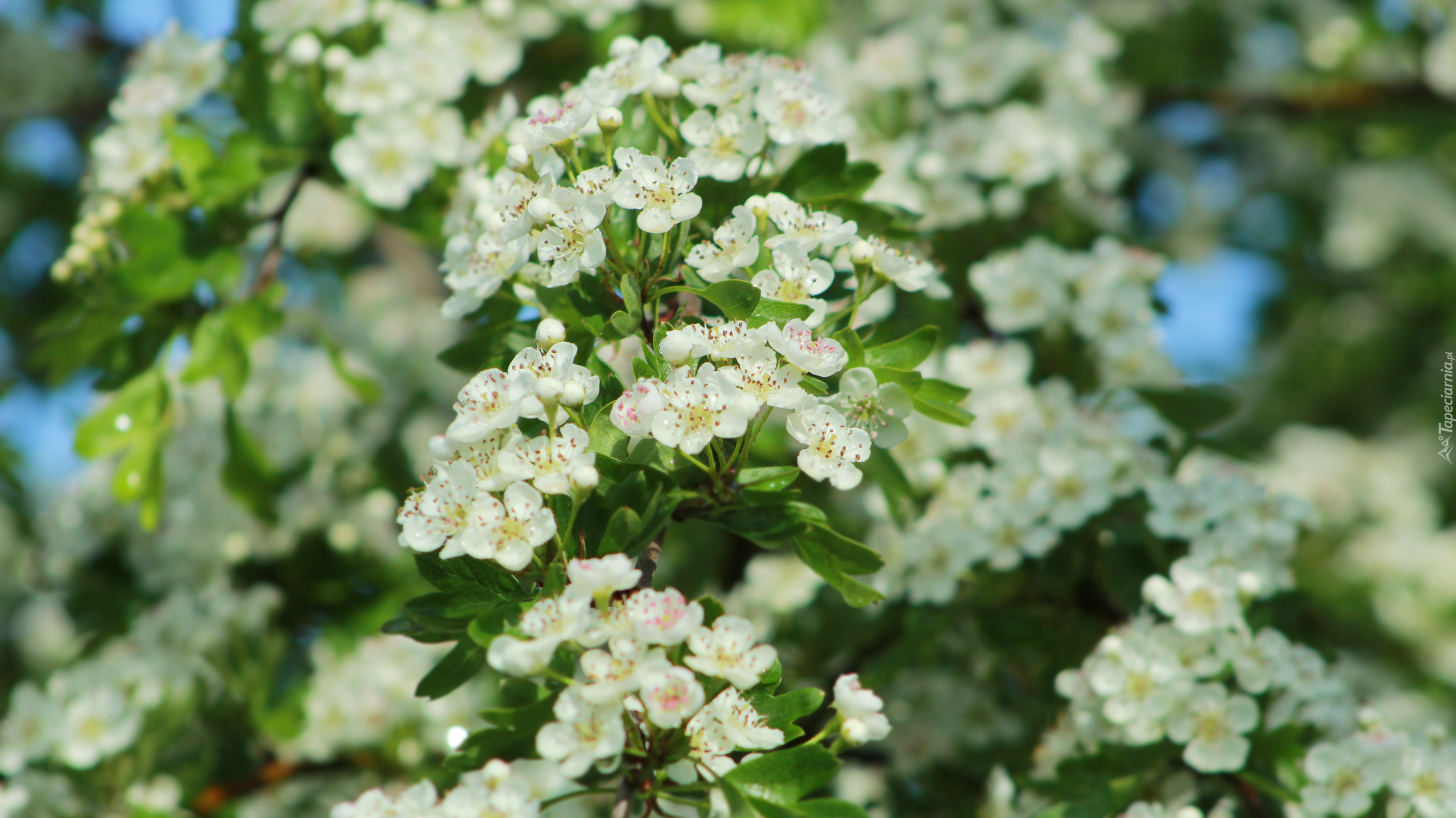 Edytor tapety: Kwitnące gałązki głogu w zbliżeniu
