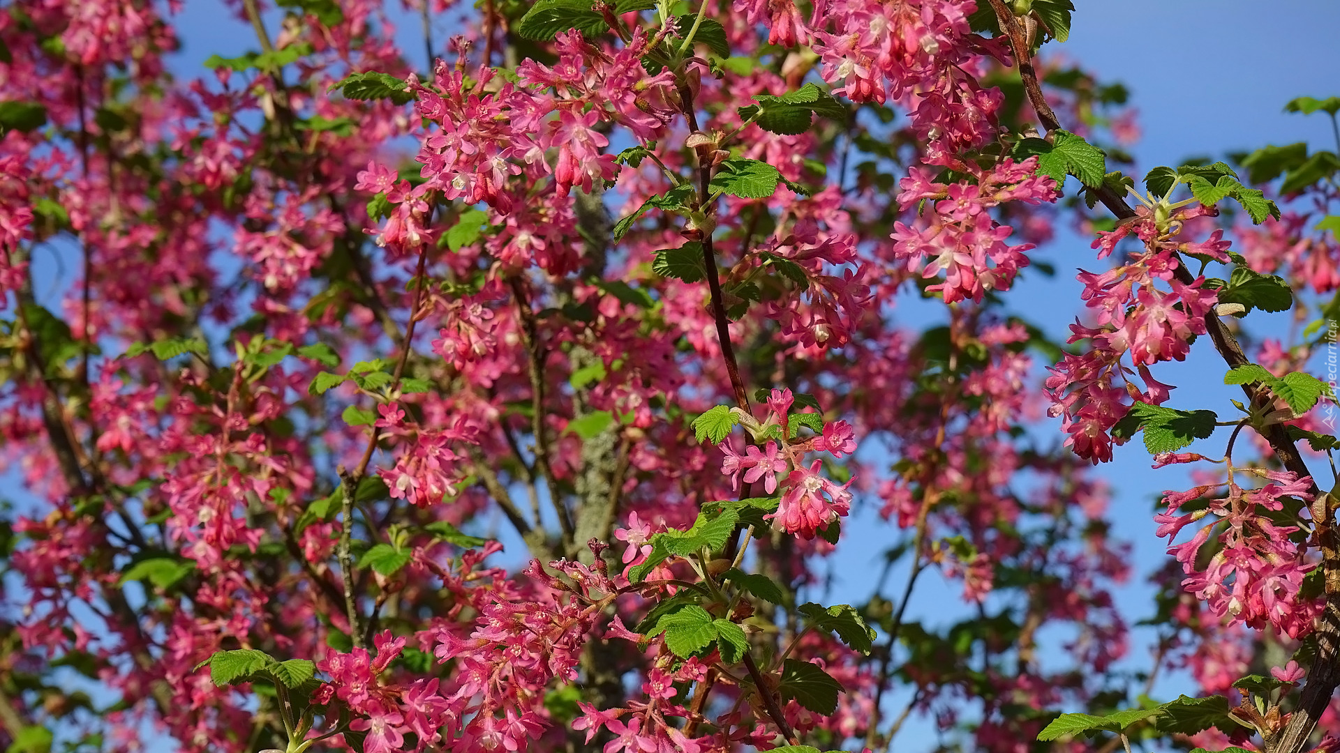 Edytor tapety: Gałązki kwitnącej porzeczki krwistej