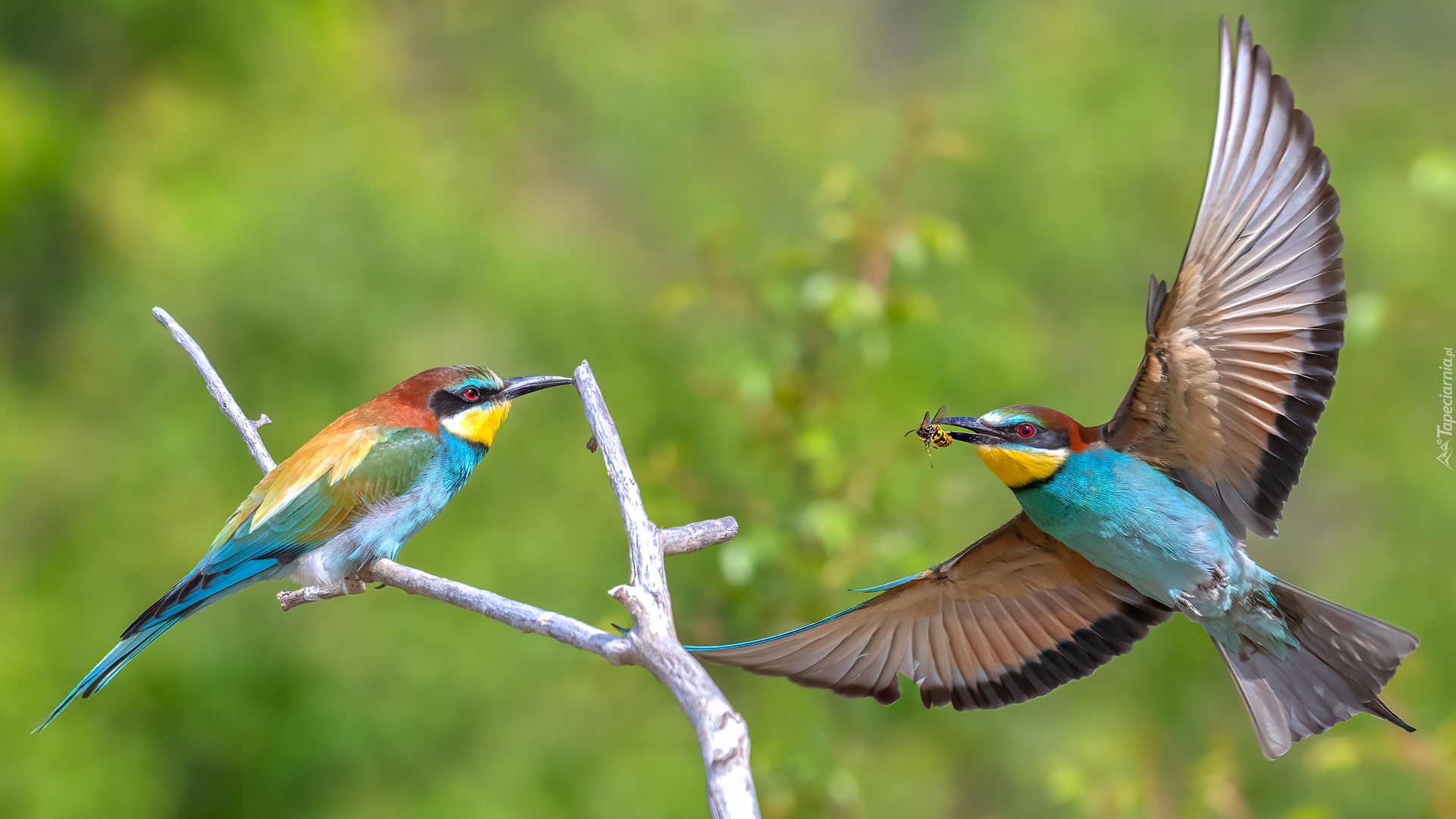 Edytor tapety: Żołna na gałązce i żołna w locie