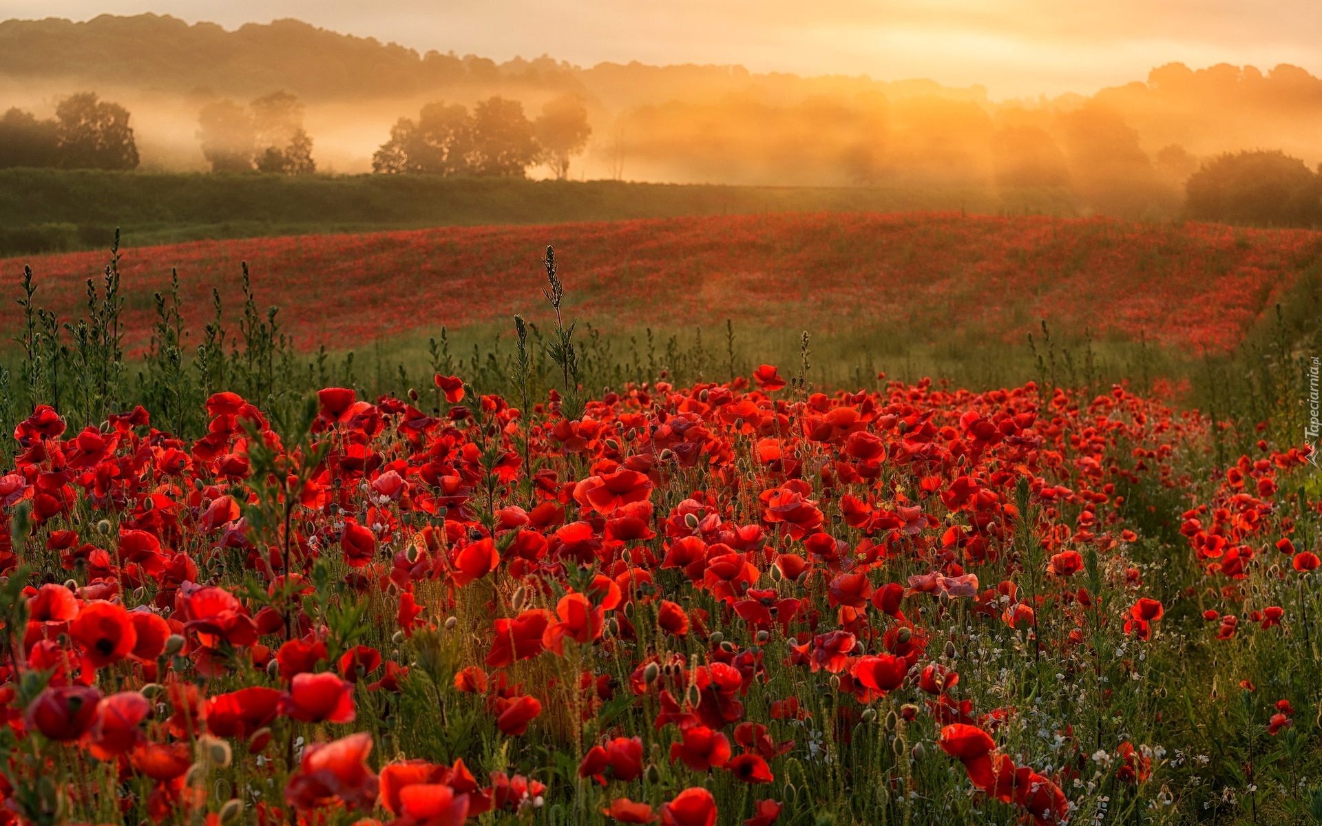 Edytor tapety: Łąka czerwonych maków