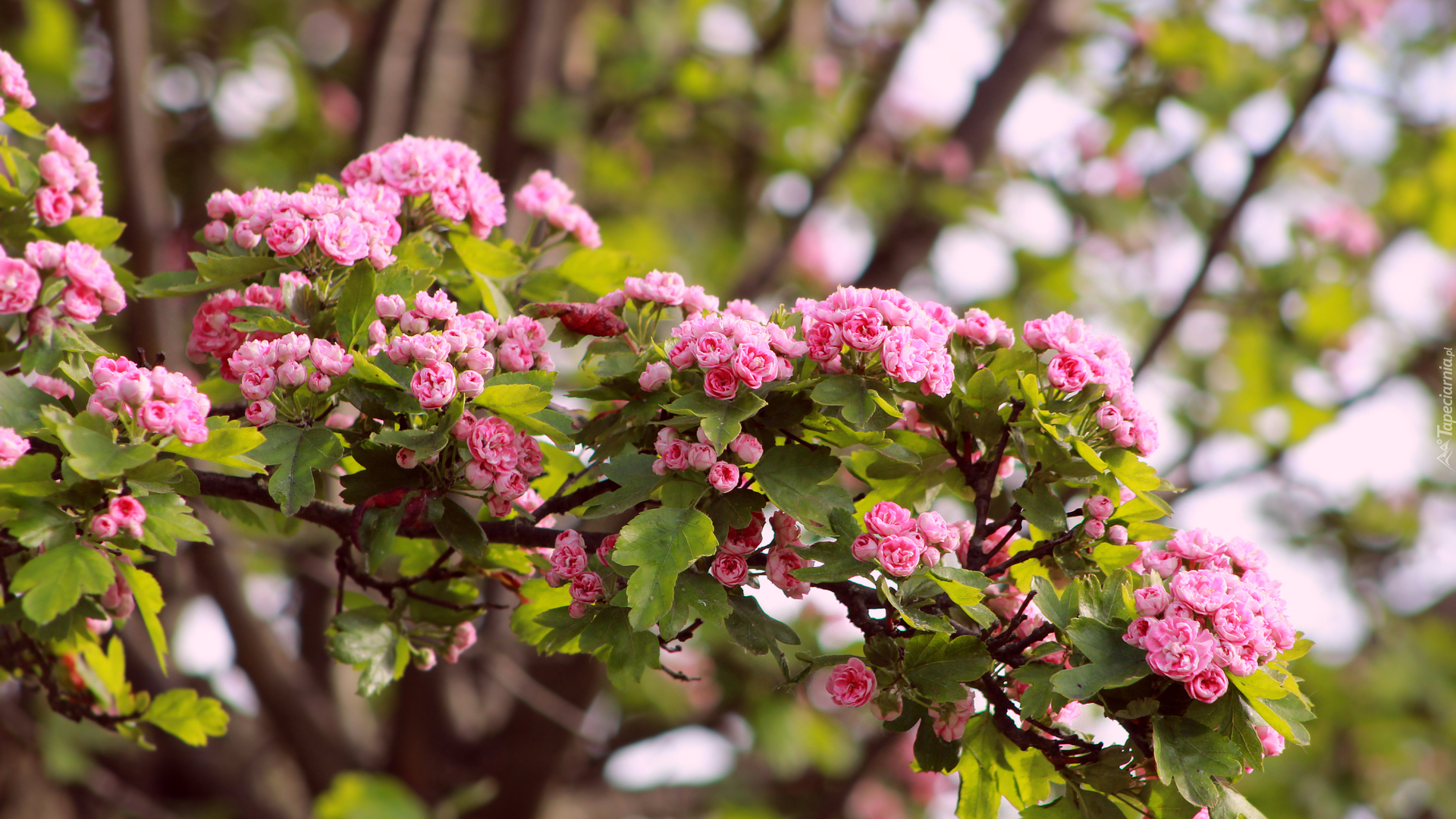 Edytor tapety: Różowe kwiaty głogu