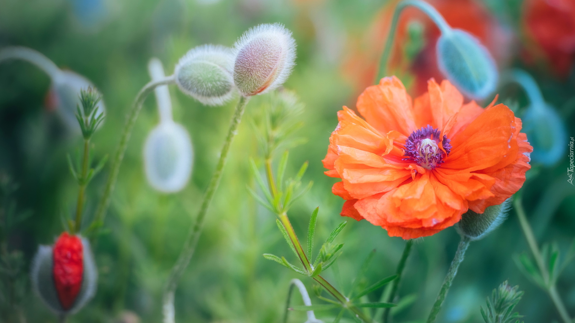 Edytor tapety: Rozwinięty czerwony mak i pąki