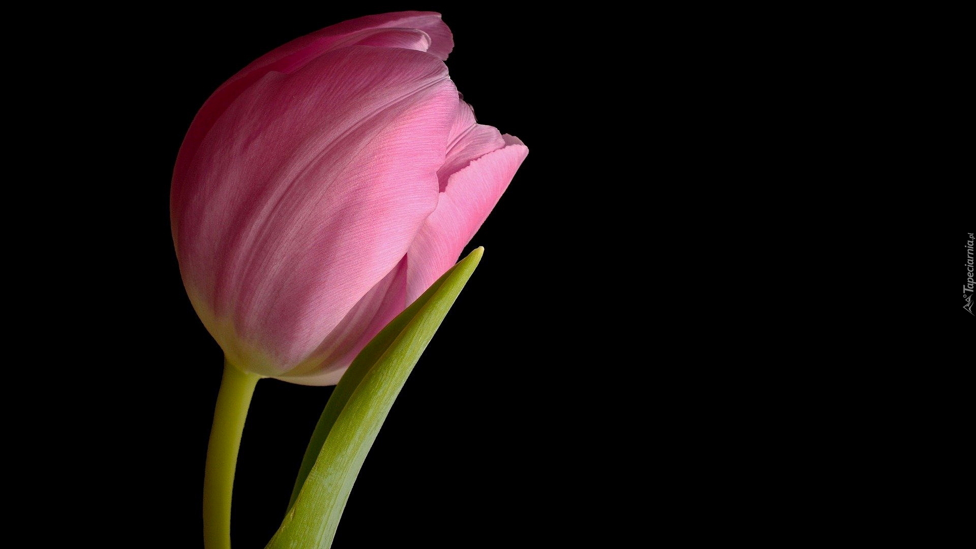 Edytor tapety: Różowy tulipan na ciemnym tle