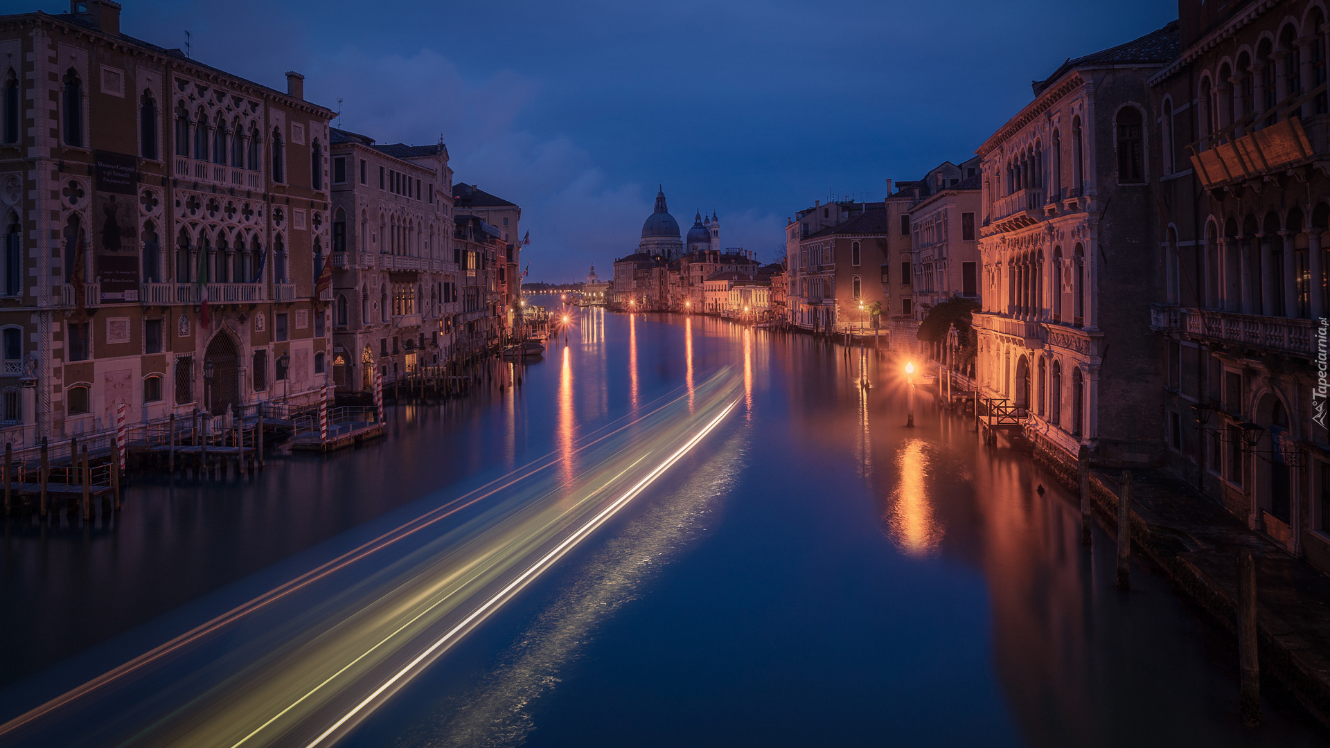 Edytor tapety: Oświetlone domy nad kanałem w Wenecji