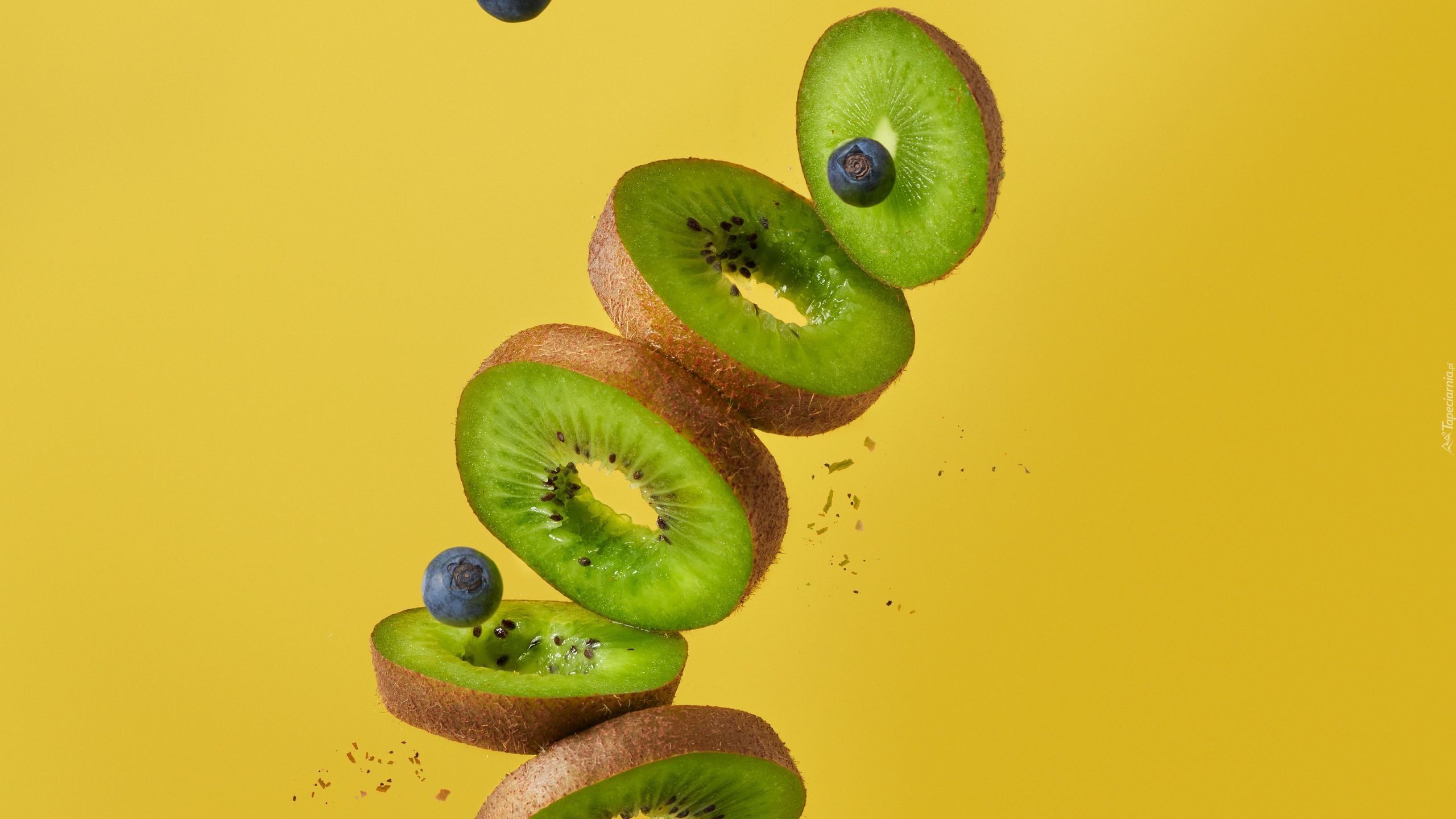 Edytor tapety: Plastry kiwi na żółtym tle