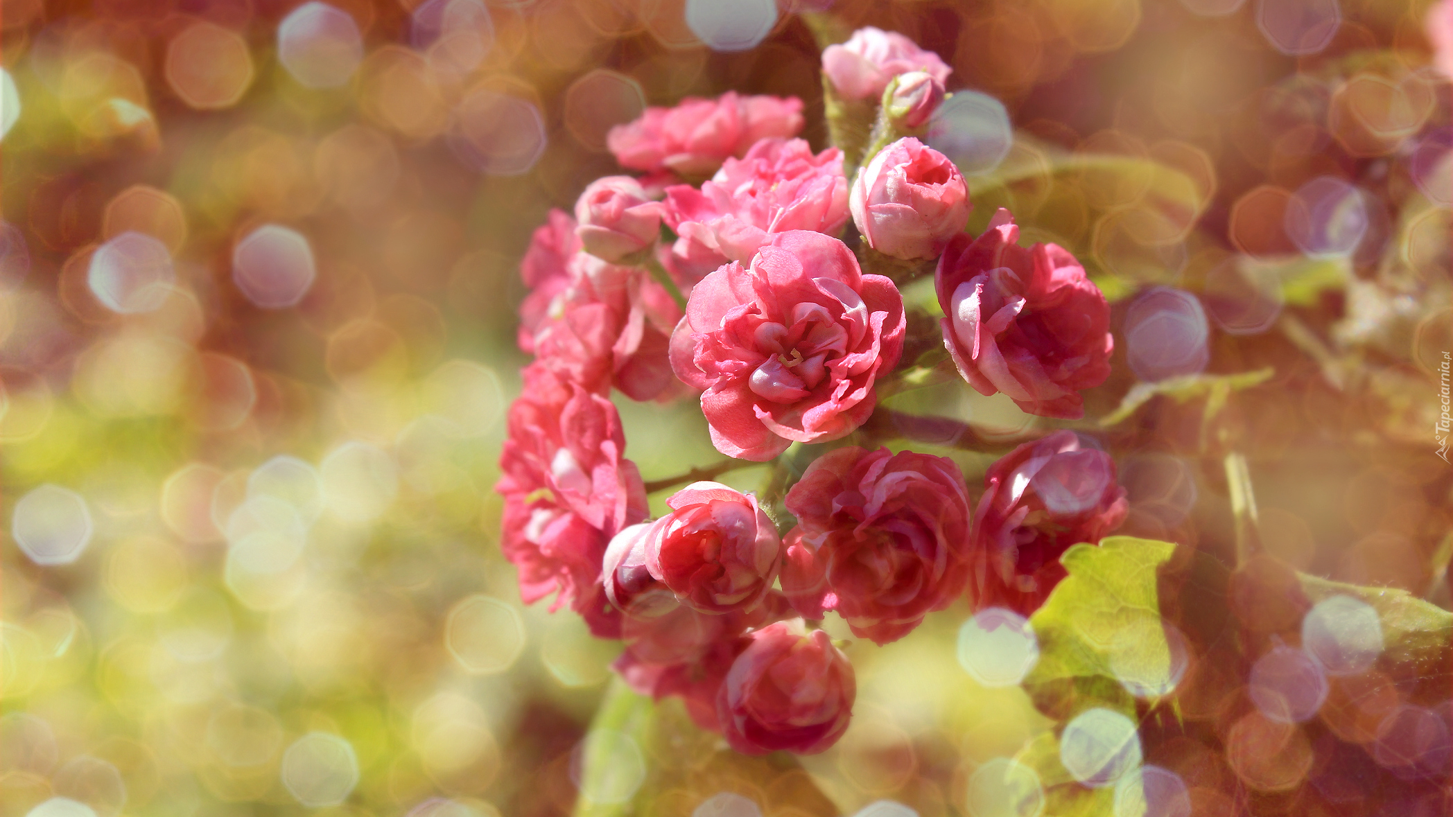 Edytor tapety: Różowe kwiaty głogu w zbliżeniu