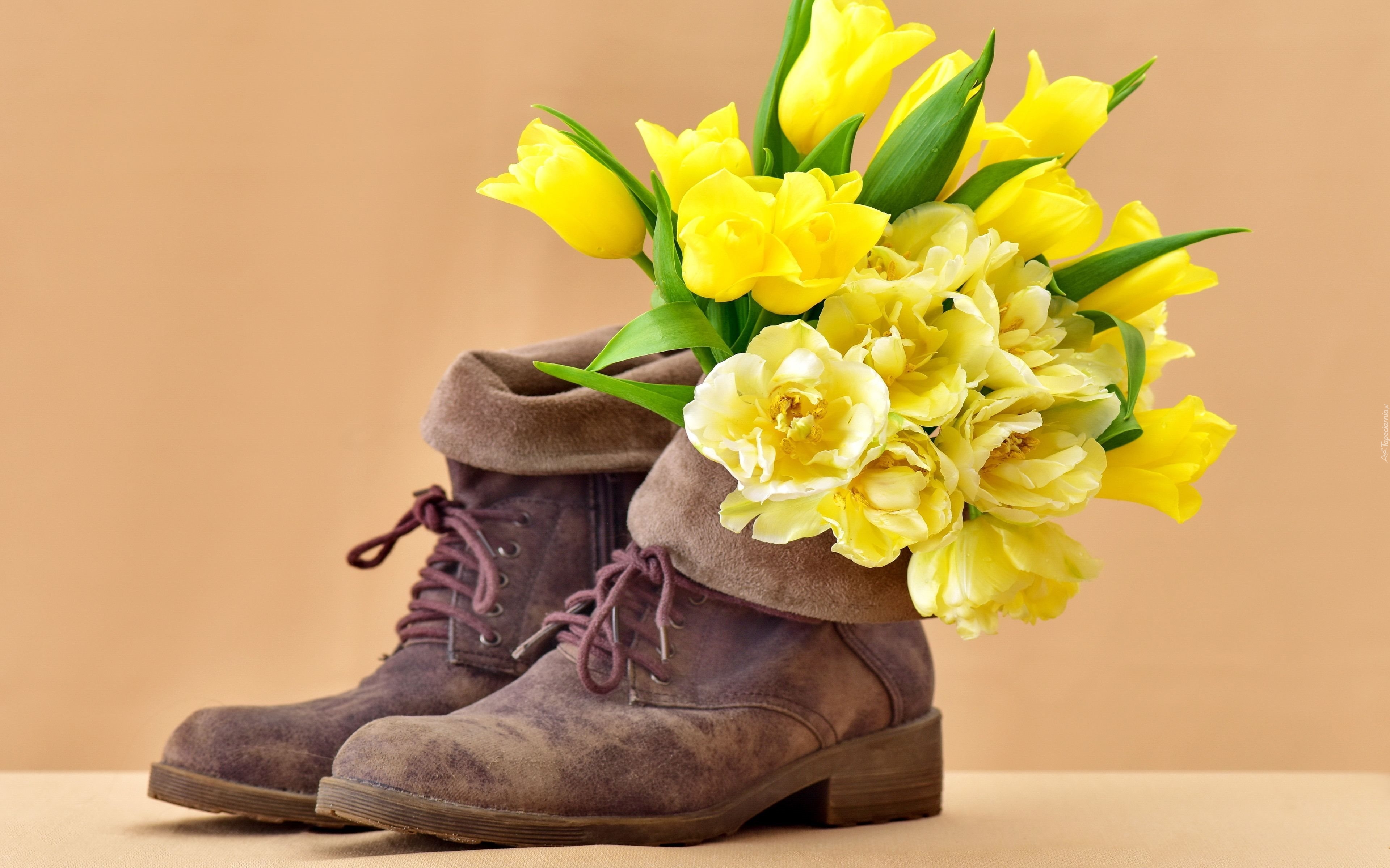 Edytor tapety: Żółte tulipany w zamszowych butach