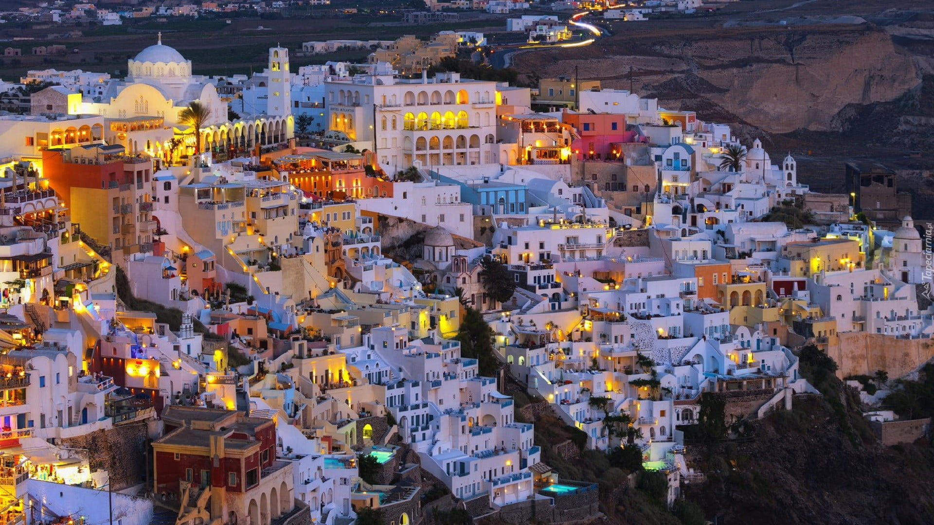Edytor tapety: Oświetlone domy w Santorini