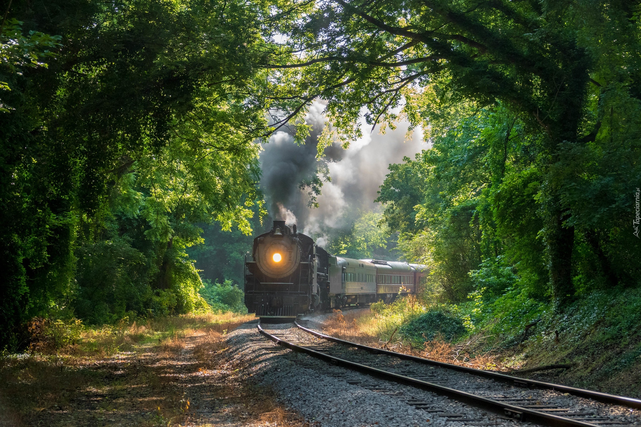 Edytor tapety: Pociąg z lokomotywą parową w lesie