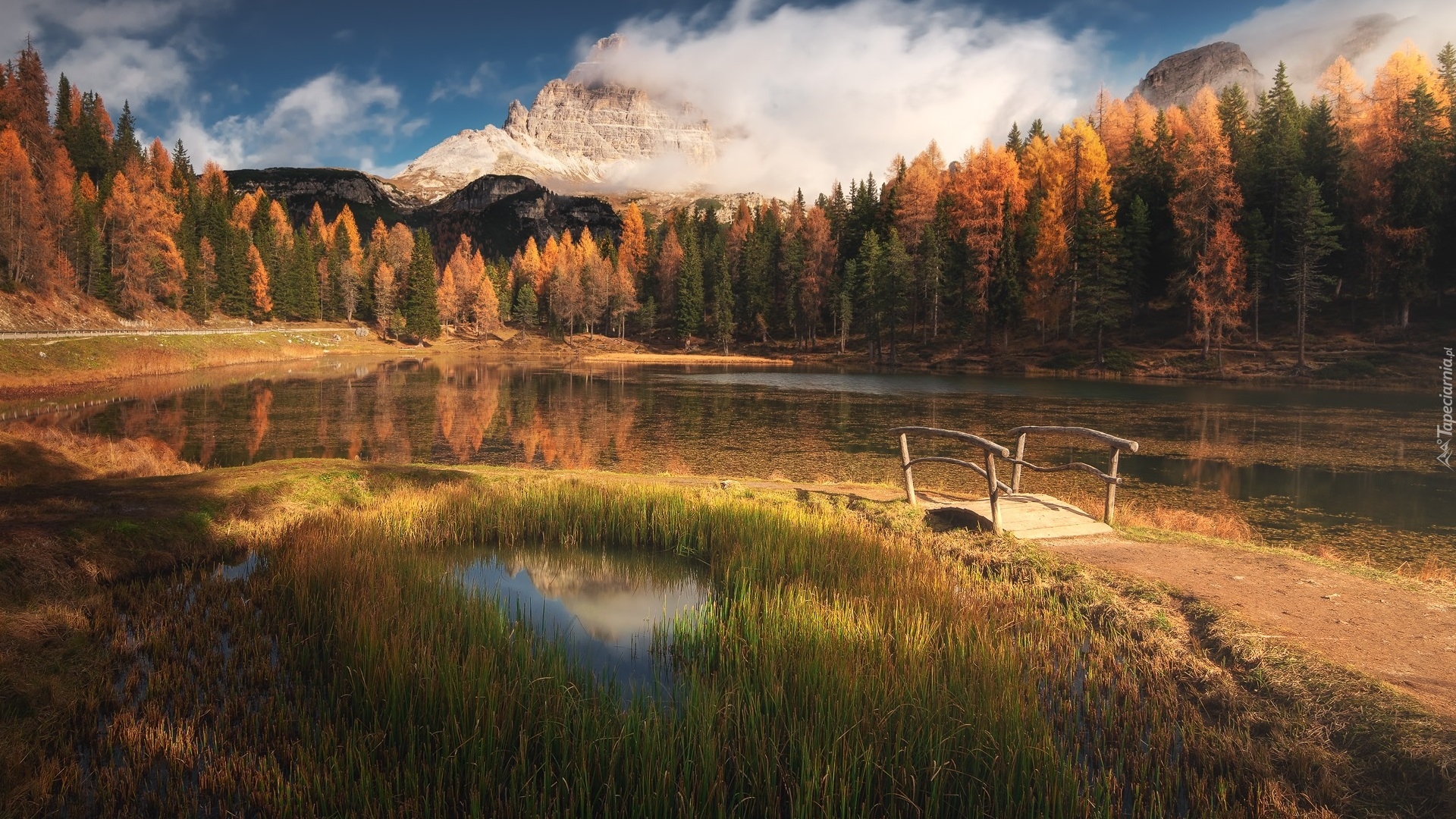 Edytor tapety: Mostek nad jeziorem Antorno Lake w Dolomitach