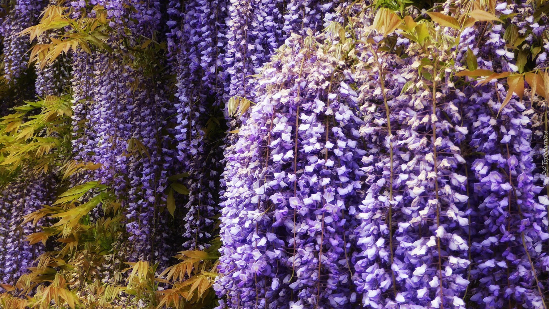 Edytor tapety: Zwisające kwiaty fioletowej wisterii