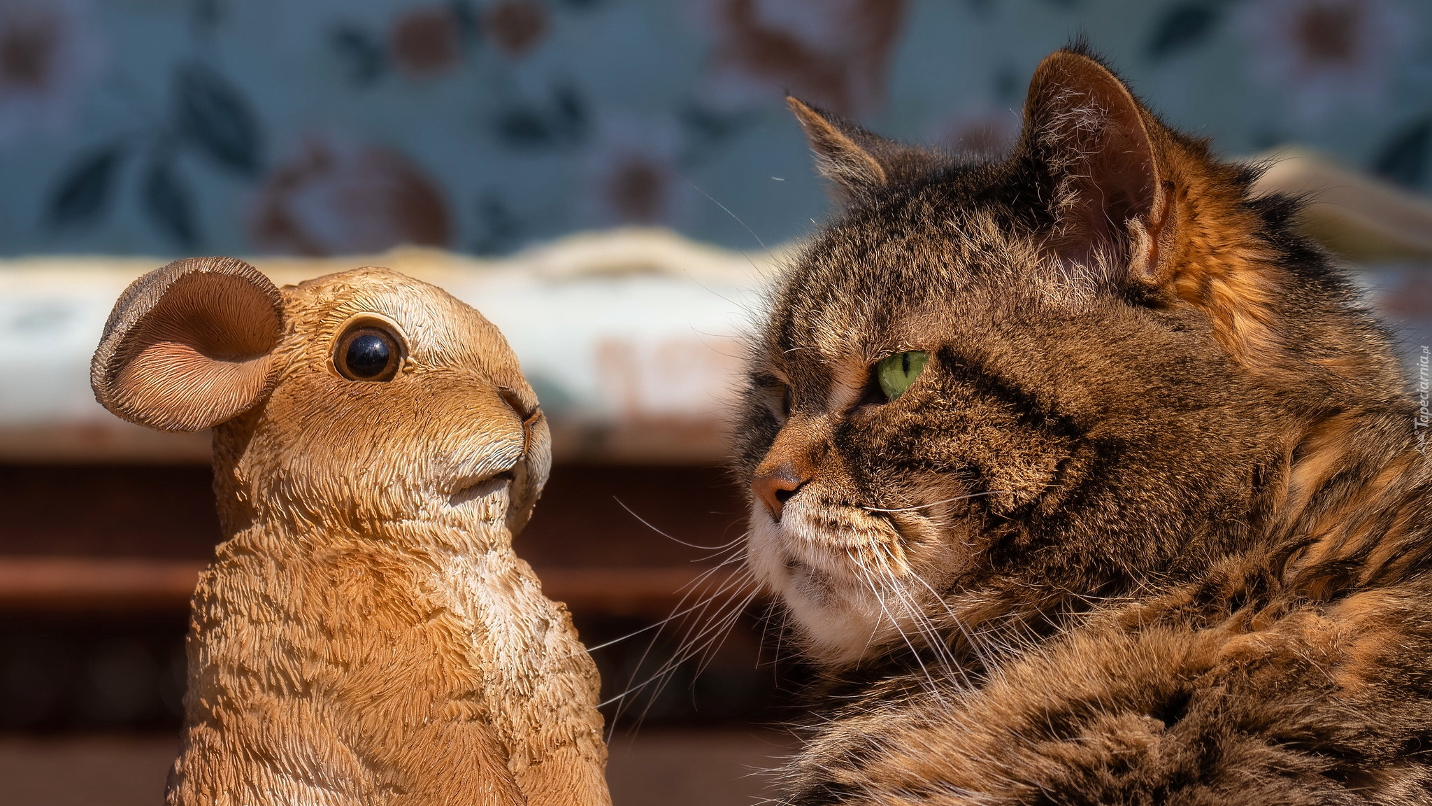 Edytor tapety: Bury kot obok figurki zajączka