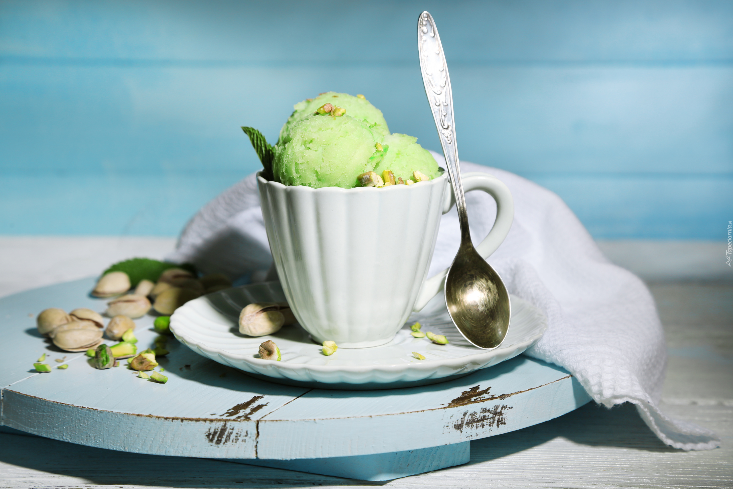 Edytor tapety: Lody pistacjowe w filiżance