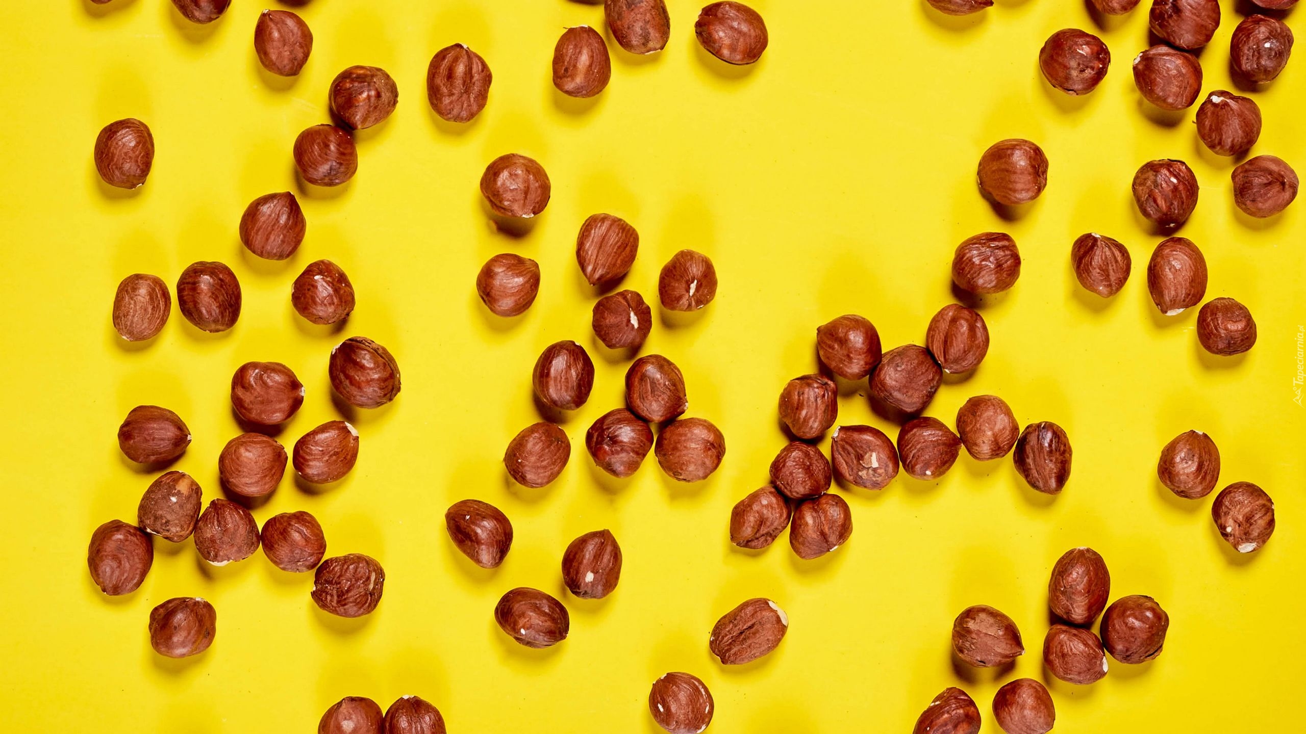 Edytor tapety: Orzechy laskowe na żółtym tle