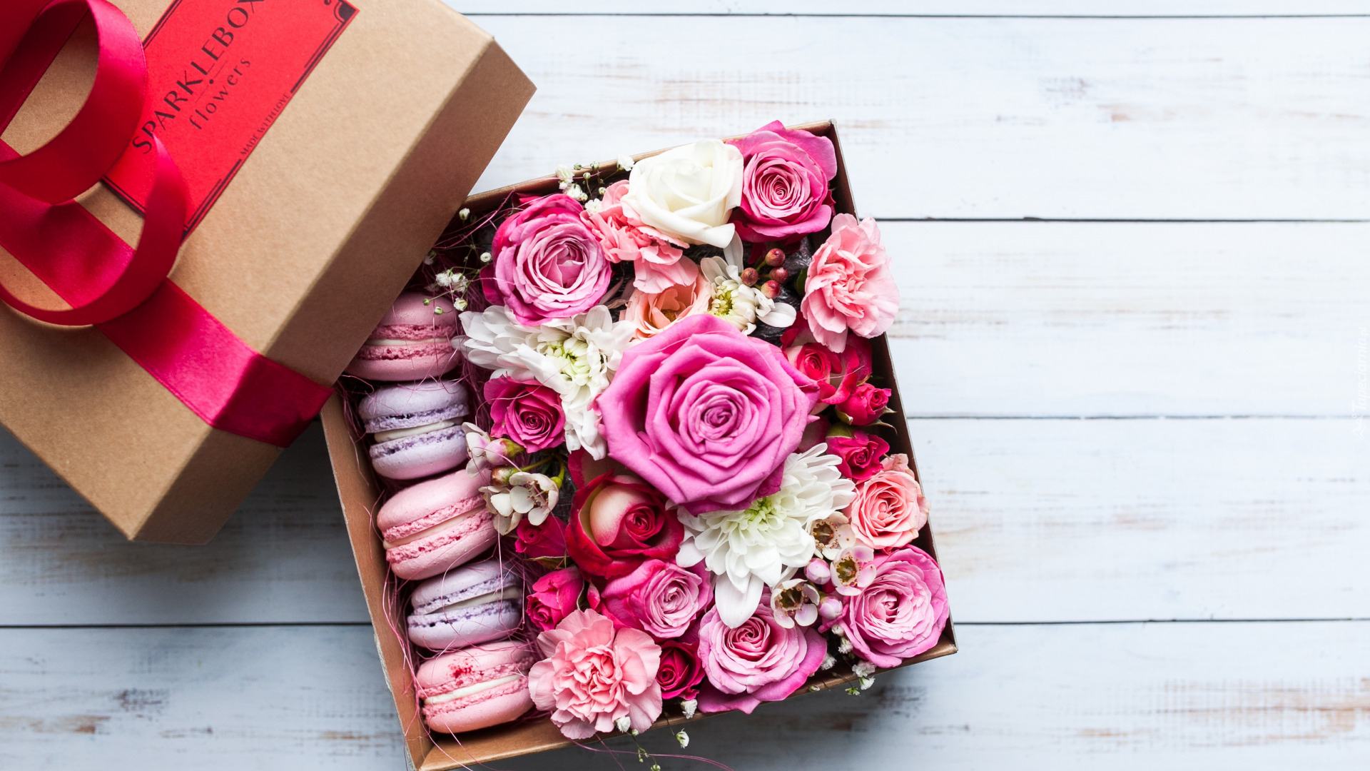Edytor tapety: Kwiaty i makaroniki w pudełku